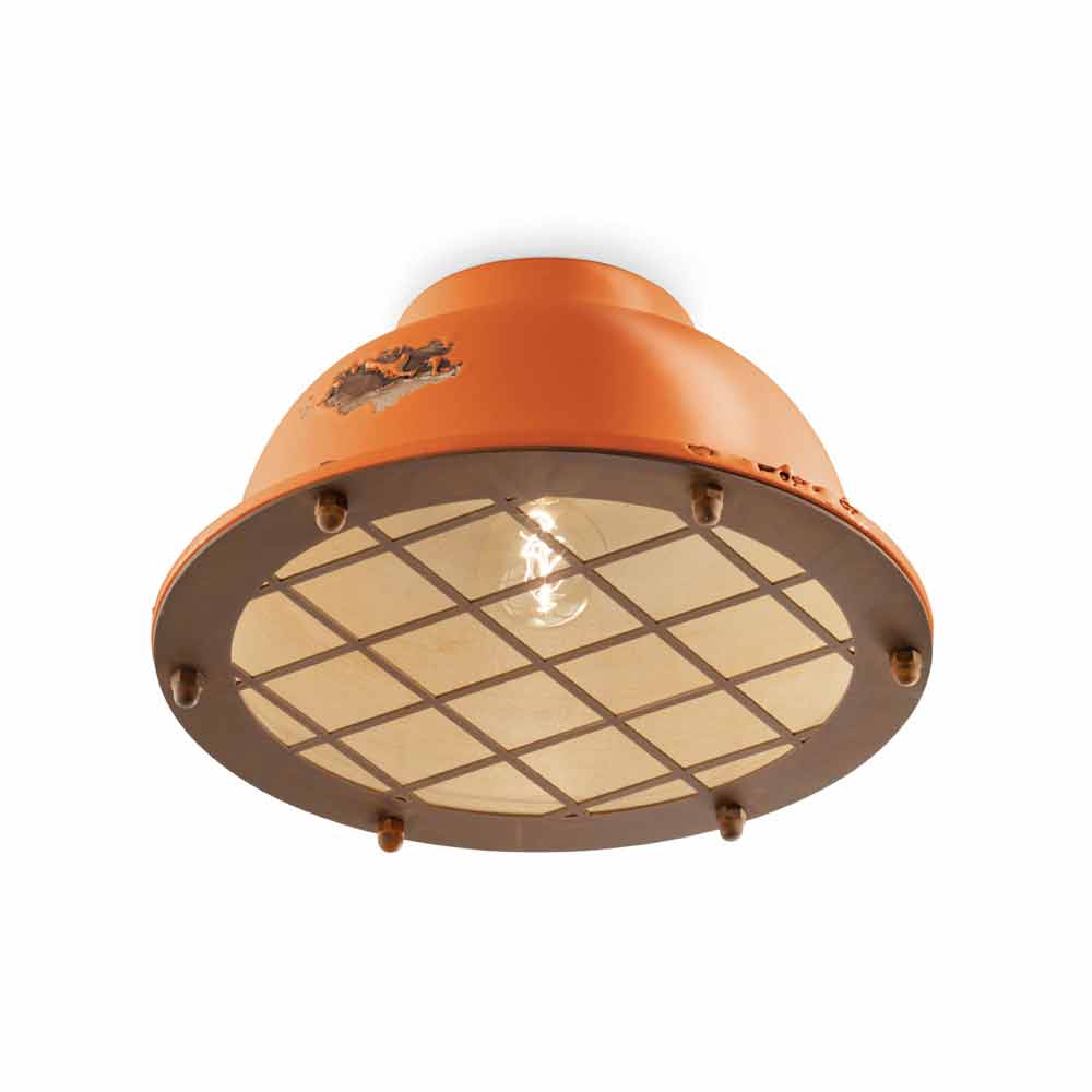 Plafonnier en céramique de style nautique avec grille Mary Ferroluce Mary est un plafonnier fantastique, avec une forme originale et un style vintage-industriel, fabriqué à la main par des artisans qualifiés en Italie. Cette belle lampe est en céramique brillante, disponible en différentes couleurs et détails en fer. La principale particularité de cette lampe réside dans le travail artisanal de la céramique. La céramique, en effet, est décorée comme si le temps avait marqué son chemin. La reproduction de l'érosion du temps combinée aux surfaces brillantes donne cette valeur supplémentaire à ce plafonnier. Cet effet usé par le temps donne à Mary un style vintage-industriel sophistiqué. Une autre particularité de cette lampe fantastique est contenue dans son design original, à commencer par son couvercle en grille et les écrous aveugles de fixation, tous deux en finition corten. Ces petits détails font de ce plafonnier au style marin une lampe inimitable. Des couleurs vives, des surfaces brillantes et des signes de vieillissement raffinés pour un profil actuel sous les traits d'un style passé. Idéal pour décorer un cottage de style anglais. Cette lampe créée pour les environnements à l'atmosphère enveloppante, est en mesure de satisfaire les demandes les plus exigeantes grâce à un design unique et original. Un design qui s'oppose au luxe mais qui cohabite harmonieusement avec lui. Un design qui préserve l'essentiel de l'usage et rassure par un délicat équilibre entre les formes et les tons. Marie donne vie à une lumière pure et sans écran. Ce sont ces formes simples et délicates qui attirent l'attention, et qui rendent Mary capable de s'adapter à n'importe quel décor, du plus simple et minimal au plus classique, créant un contraste délicat. Apportez aussi une touche design à votre intérieur ! Des petits détails pour un grand effet au goût d'antique ! Lampe disponible en différentes finitions. Consultez le nuancier et entrez le code de la finition souhaitée dans la case appropriée !
