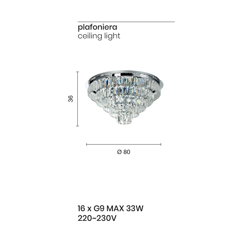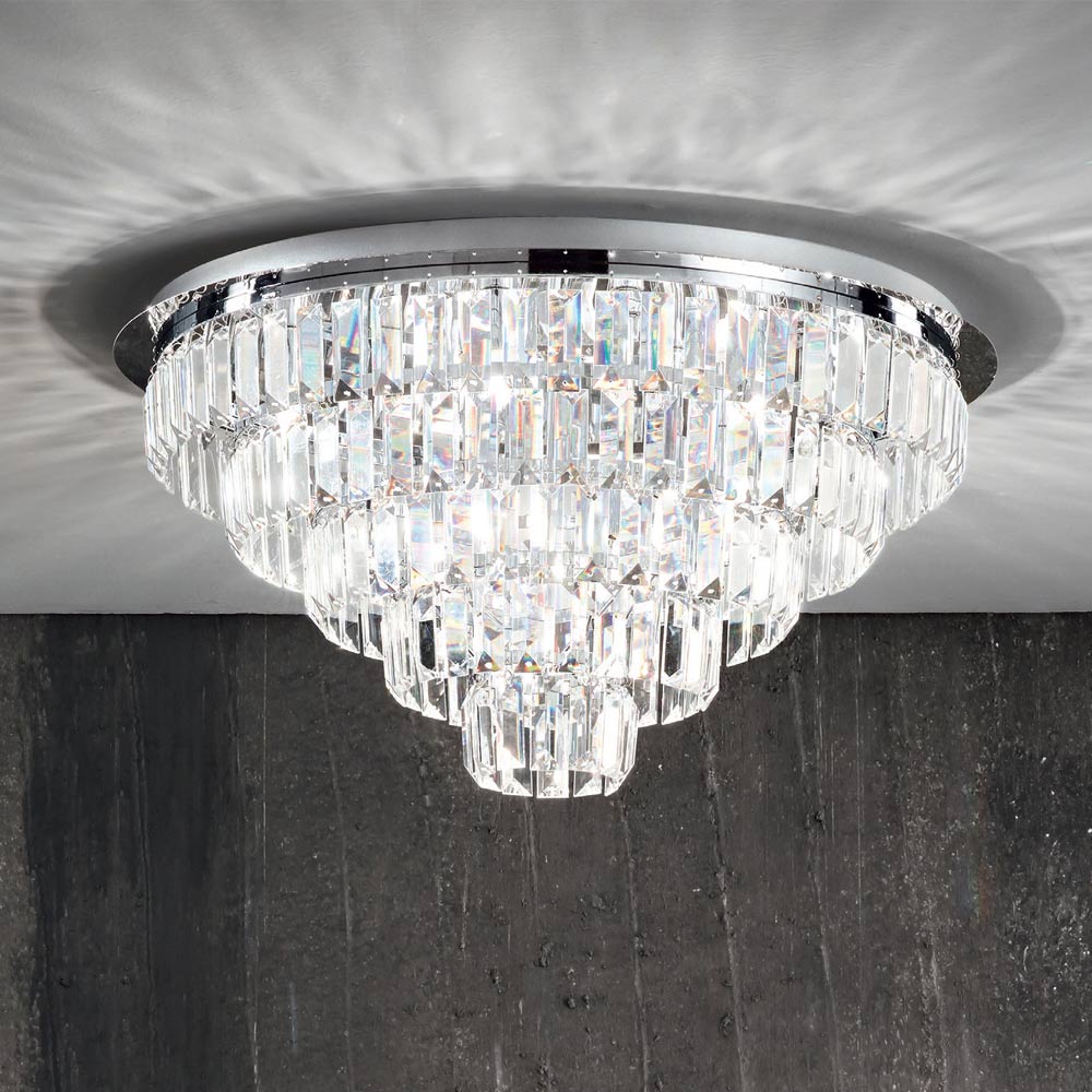 Ce plafonnier de salon à 9, 12 ou 16 lumières est capable de créer des atmosphères luxueuses et importantes grâce à son design précieux et lumineux.