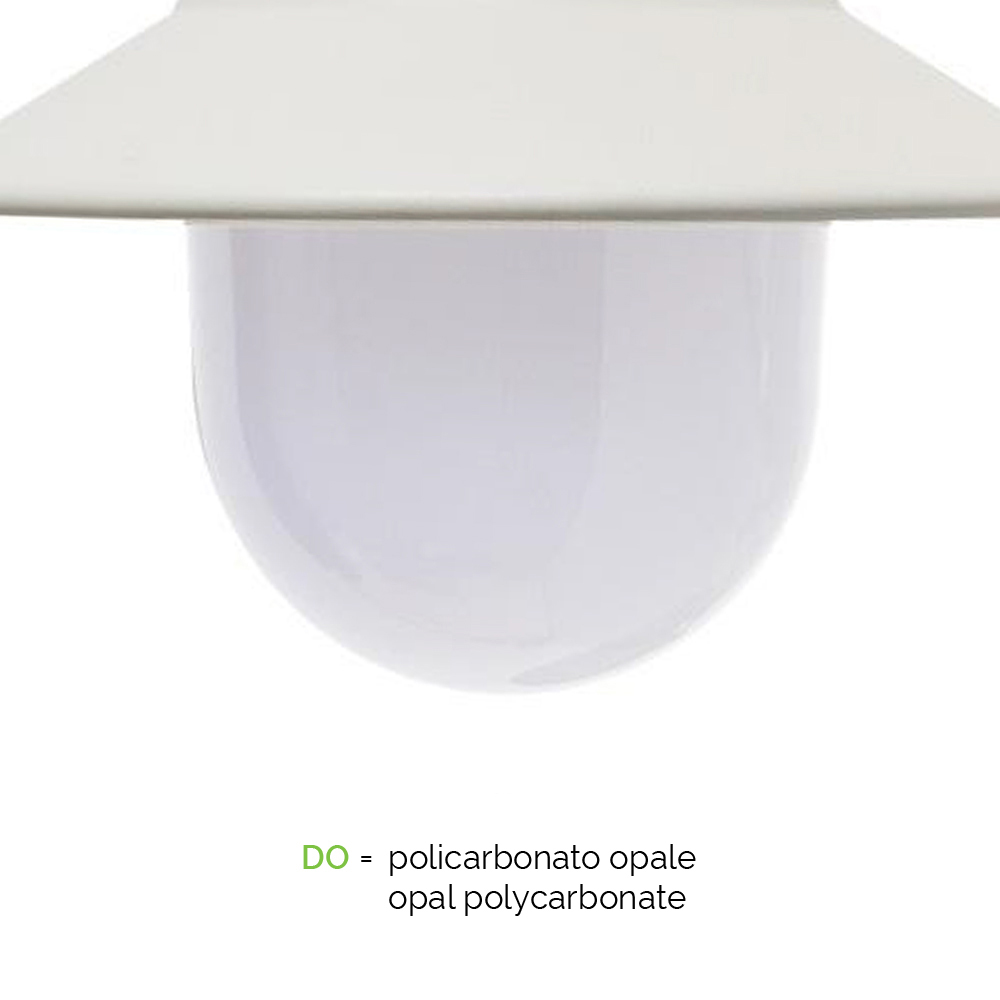 en polycarbonate équipé de vis en acier inoxydable. Un produit à forte personnalité élégante caractérisé par un style vintage qui augmente son caractère unique et souligne son esthétique raffinée. Idéal pour meubler des environnements extérieurs domestiques ou contractuels tels que jardins, porches, avenues et allées. Les nuances de couleurs proposées sont strictement