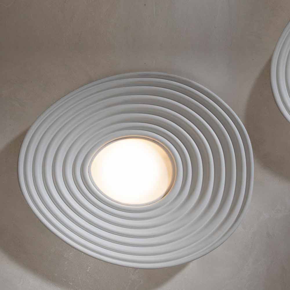 La lampe est en plâtre blanc opaque et diffuseur PMMA blanc pour une conception entièrement italienne qui, par l' expérimentation non conventionnelle et de la recherche continue entre tradition et modernité, est capable d'étonner, oser et Excite, vous permettant d'exprimer vos émotions à travers un original et personnel utilisation décorative de la lumière.