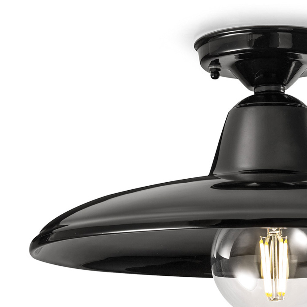 Plafonnier de style rétro en céramique noire ou blanche et fer fabriqué en Italie par Ferroluce.