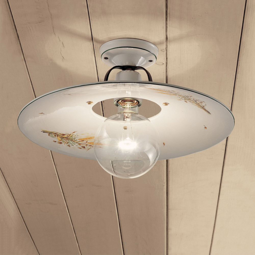 Plafonnier vintage en fer brut et céramique avec décorations à la main, 2 tailles fabriquées en Italie par Ferroluce.