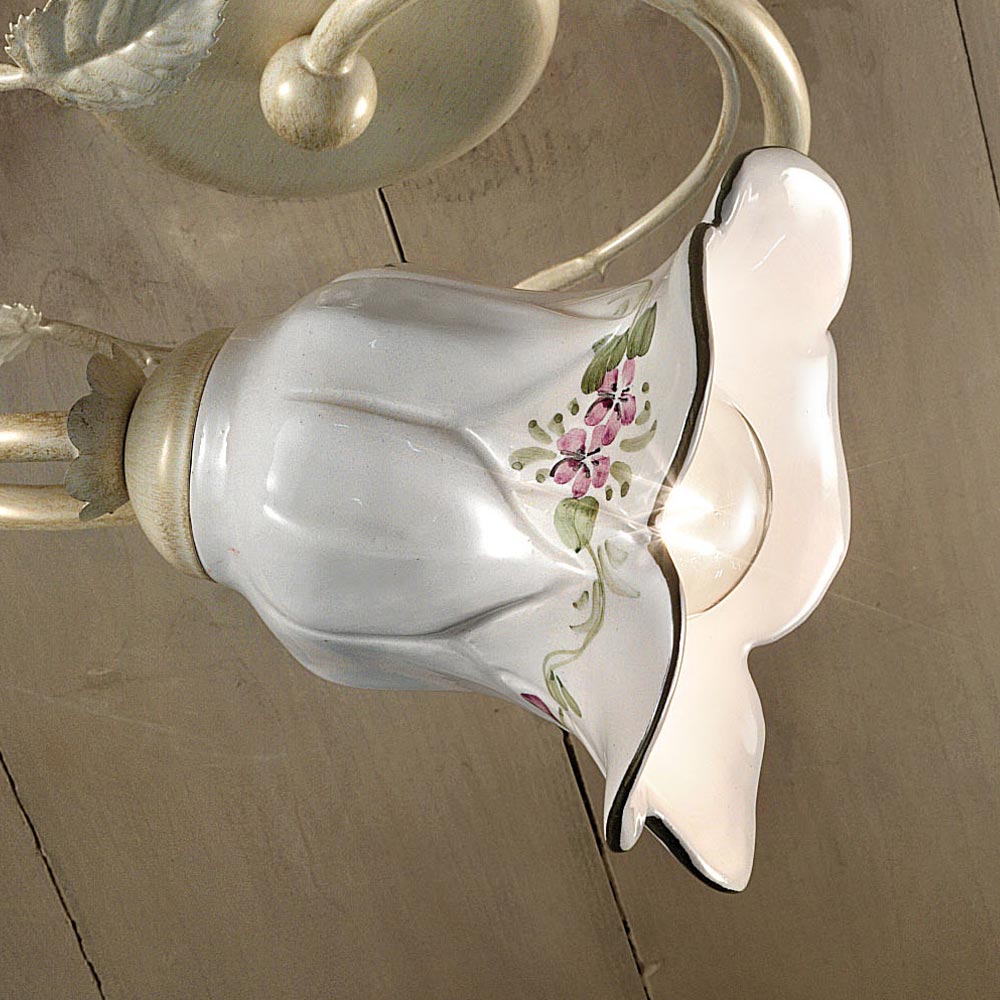 Plafonnier en Métal et Céramique avec Rose Peinte à la Main - Pise