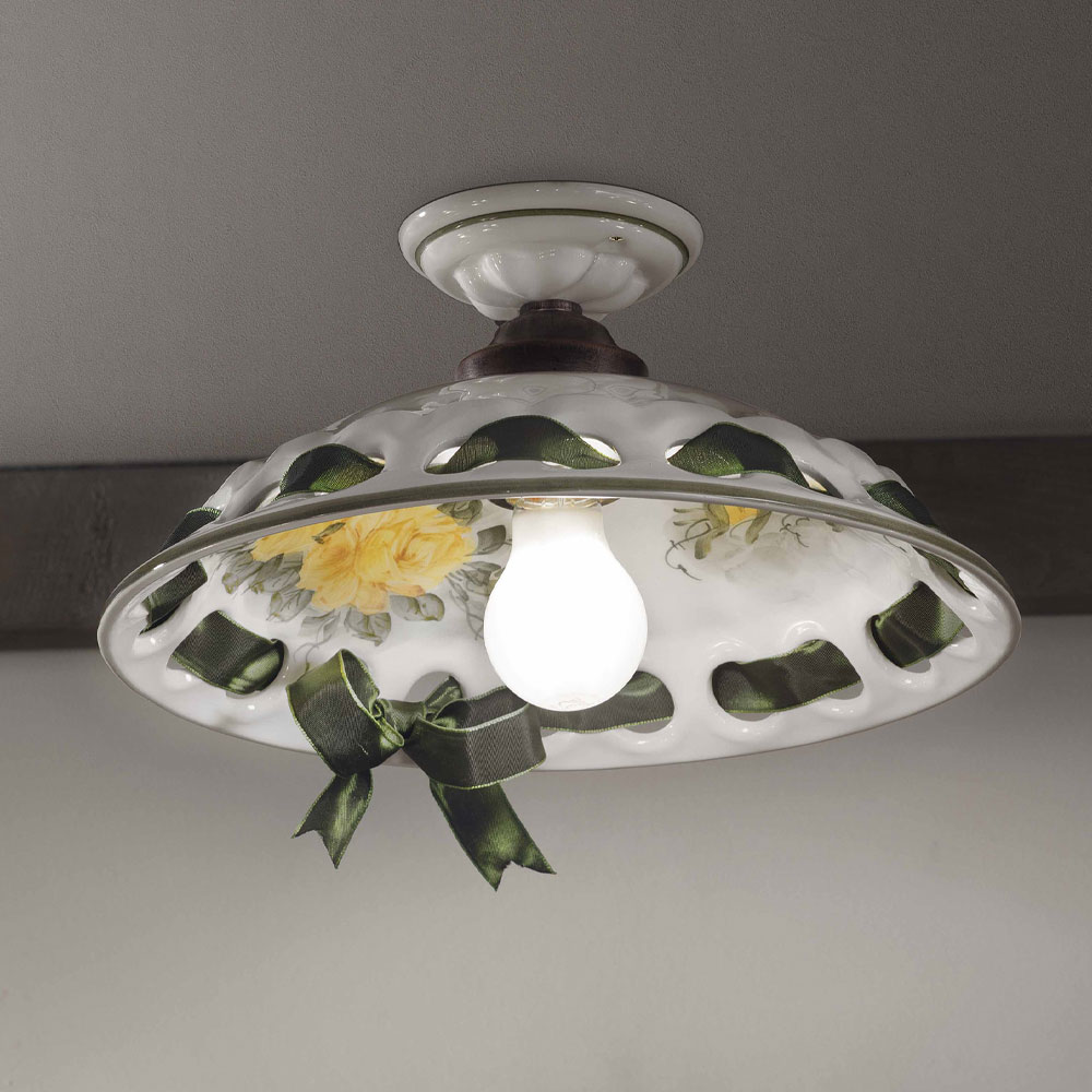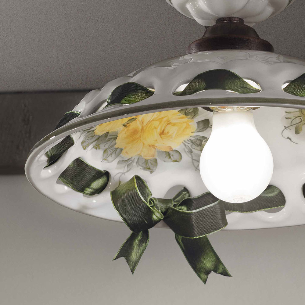Plafonnier en métal et céramique artisanale avec rubans, fabriqué en Italie par Ferroluce.