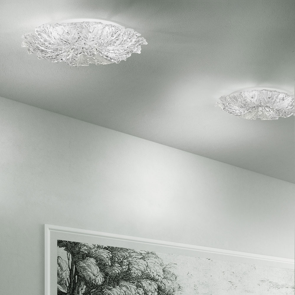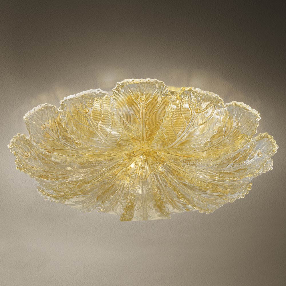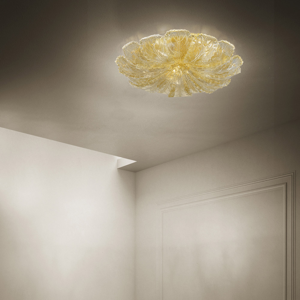 Plafonnier artisanal en verre de Venise et métal Made in Italy.