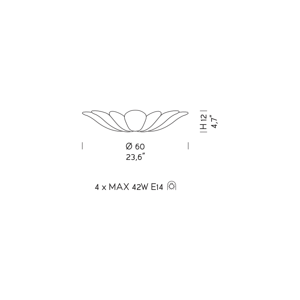 Tailles disponibles:- diamètre 60 x H 12 cm (4 lumières) ;