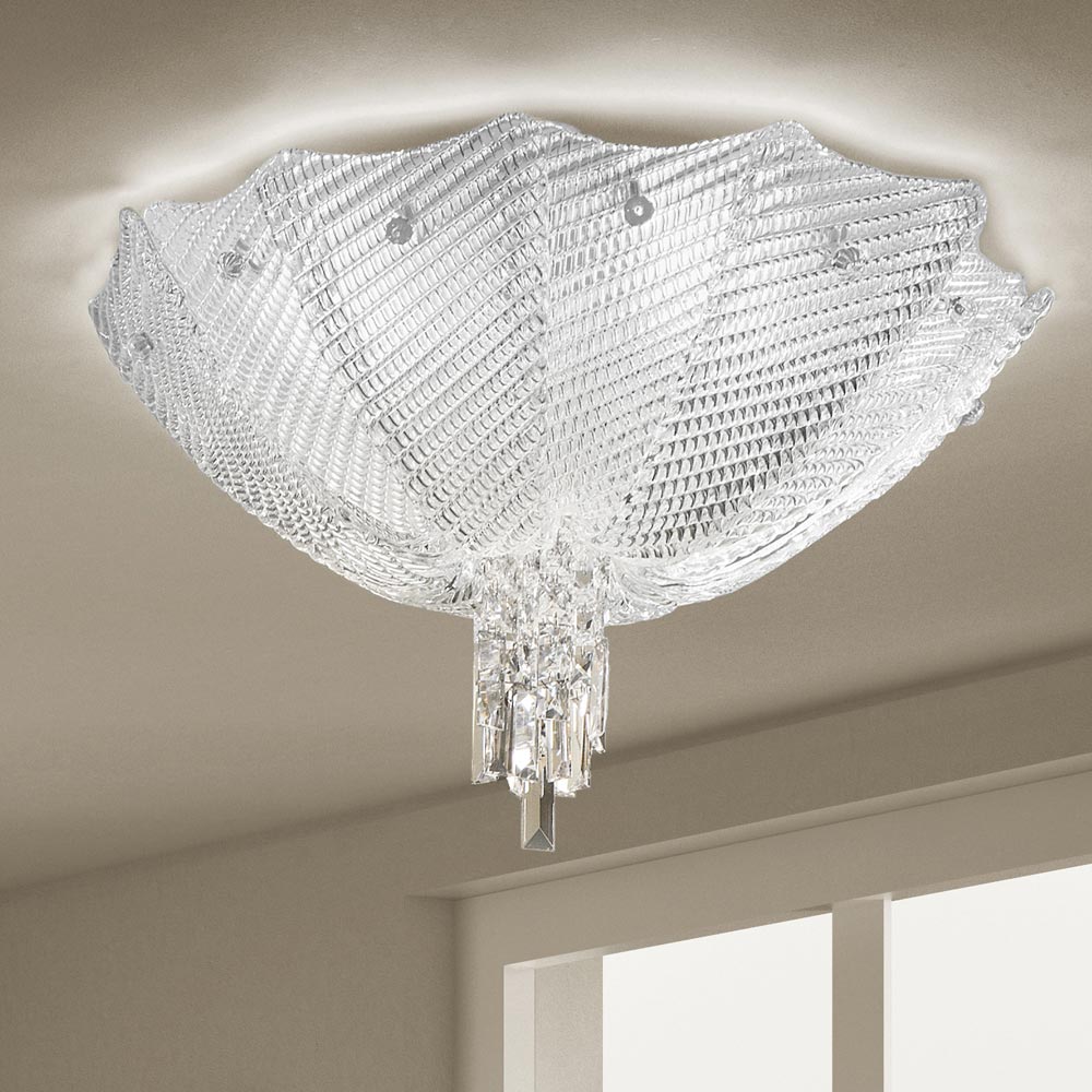 Plafonnier artisanal en verre vénitien et métal Made in Italy.