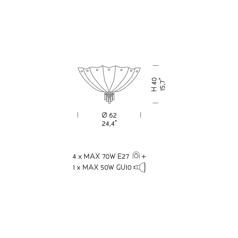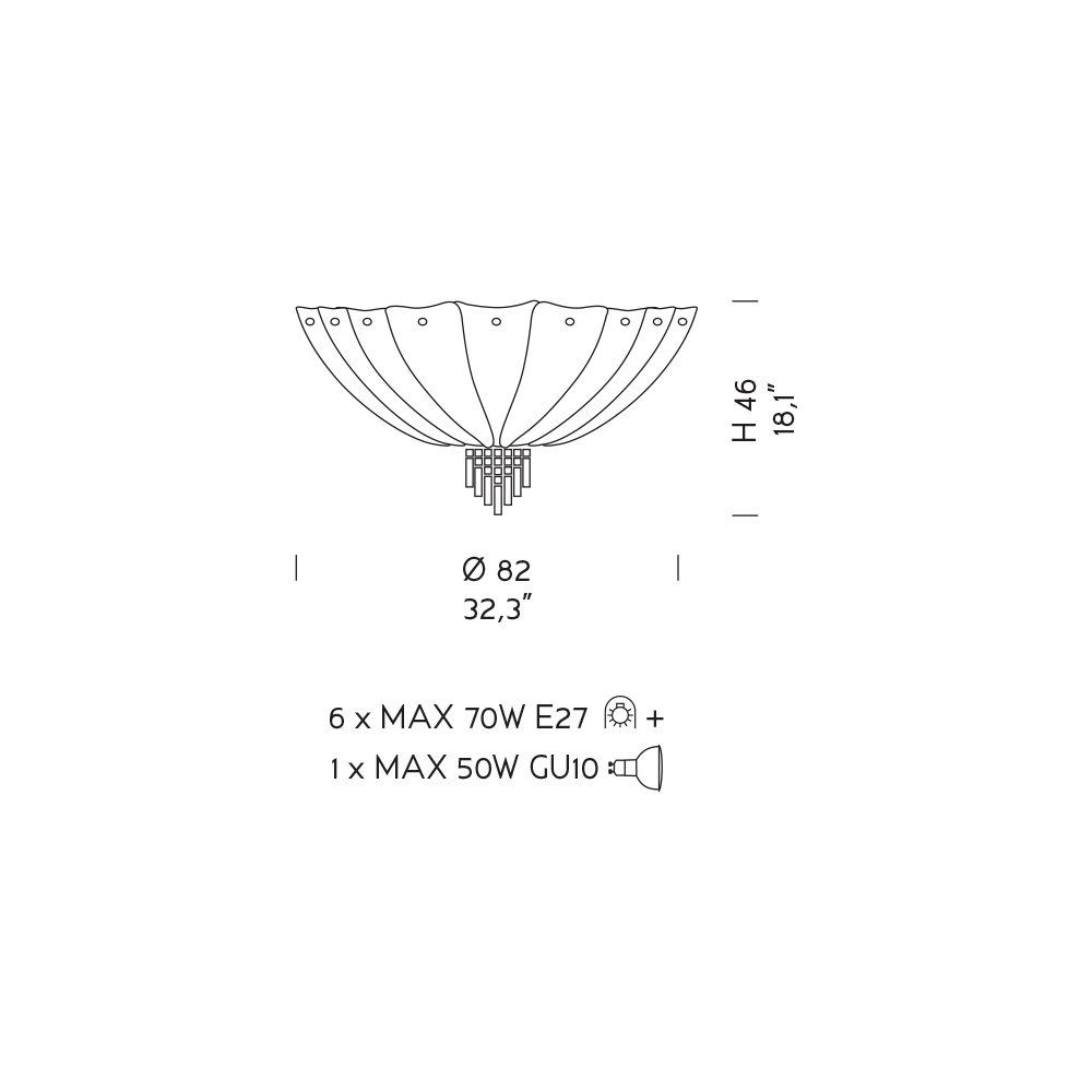 Ampoules (non incluses) : 5/7 x MAX 70W E27 + 1 x MAX 50W GU10