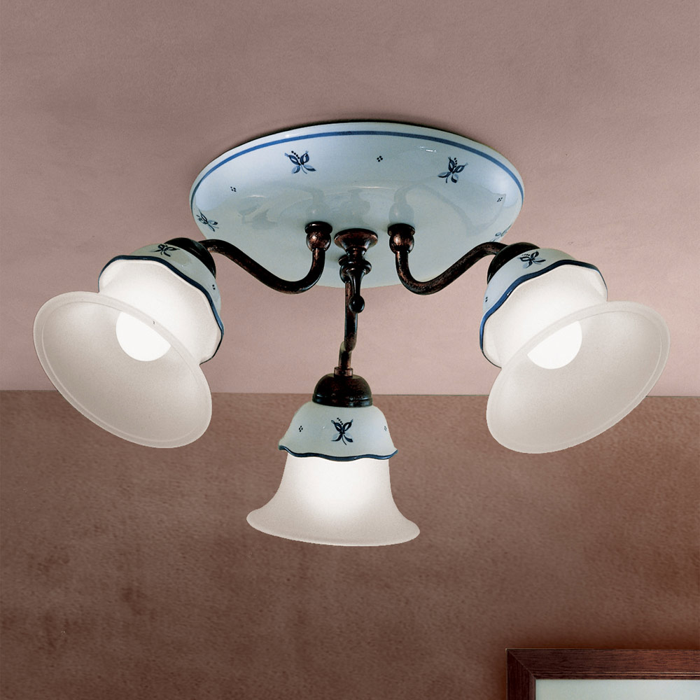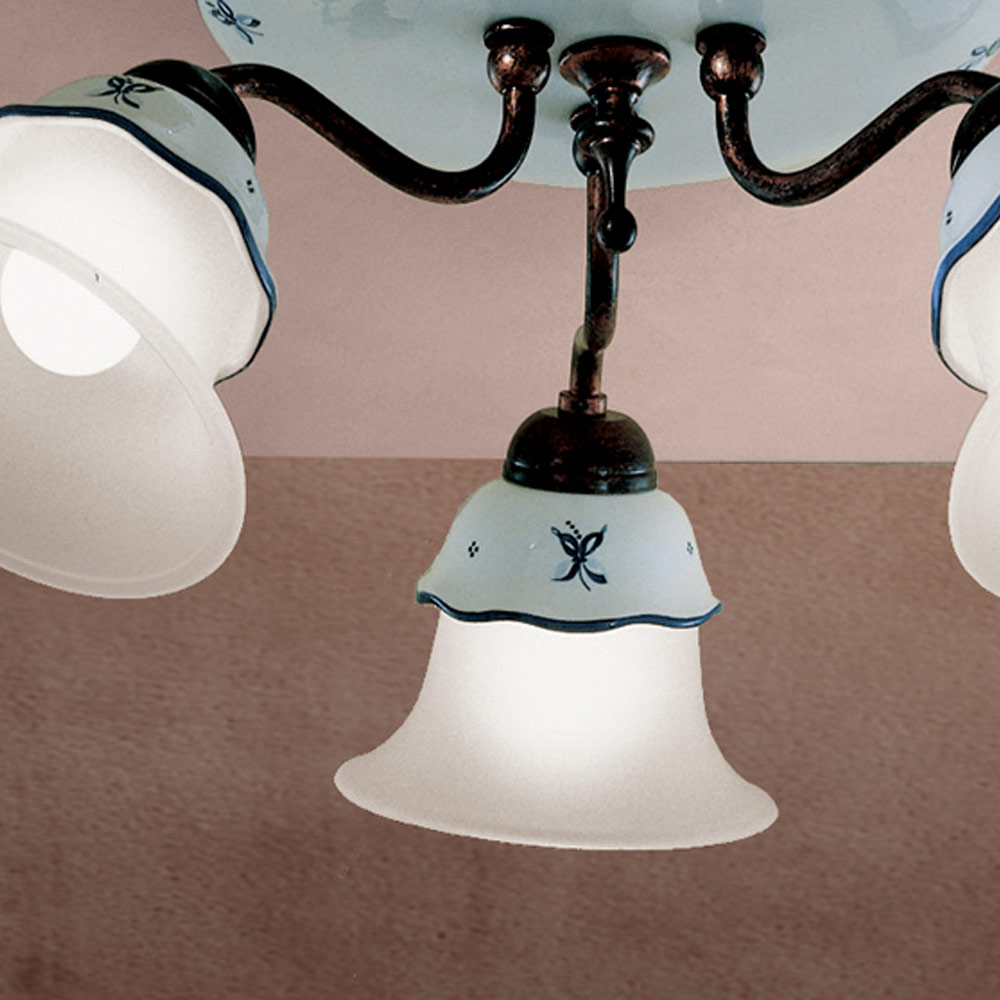 Plafonnier vintage en fer, verre et céramique décorée à la main - Ferrara