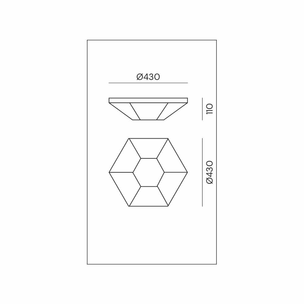 Plafonnier hexagonal à 2 lumières en laiton et verre de design artisanal fabriqué en Italie.