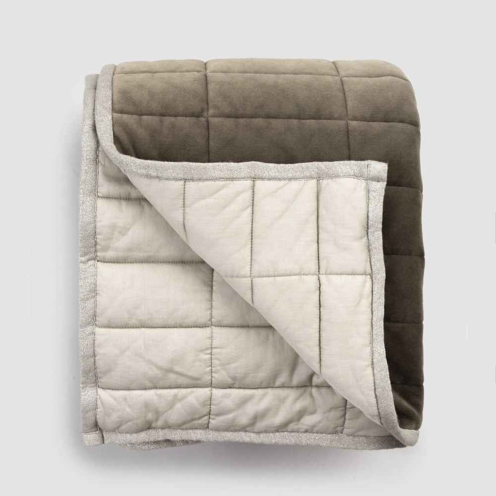 Jeté en satin de coton et chenille avec bord lurex, de haute qualité fabriqué en Italie.