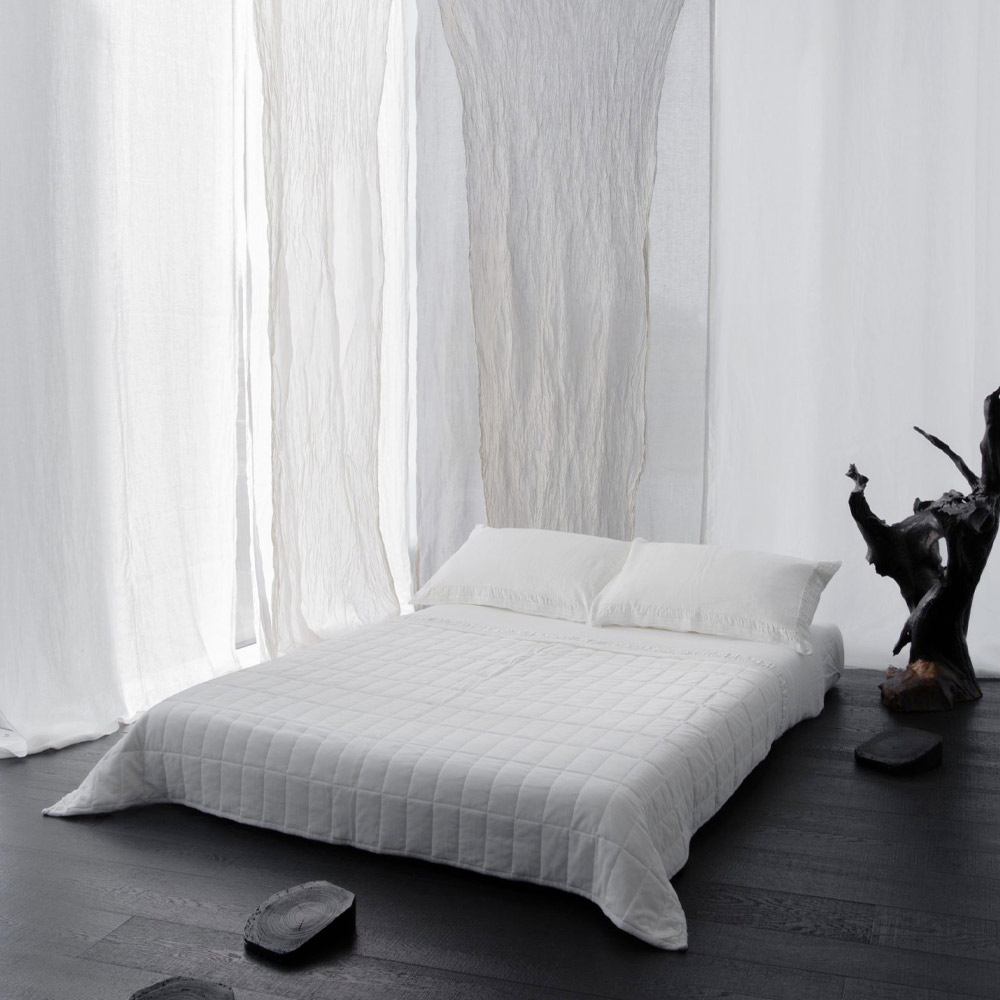 jeté en satin de coton et chenille agrémenté d'une élégante