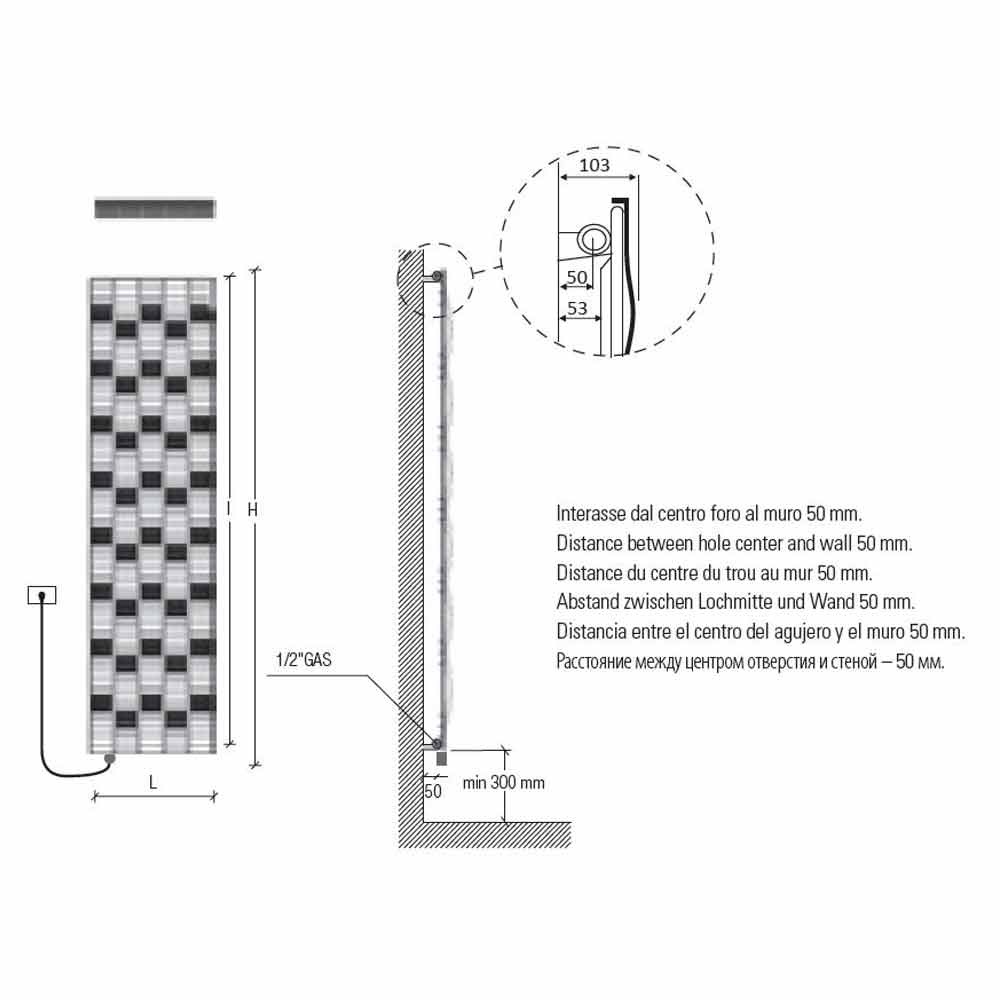 Le thermostat de 110 mm doit être ajouté à la hauteur. Boîtier thermostatique blanc en standard pour radiateurs blancs; chrome pour les radiateurs colorés et finitions en acier inoxydable. Alimentation monophasée 230 volts.