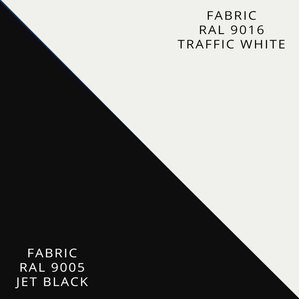 - combinaison 7: structure noire mate et tissu double face RAL 9005/9016 noir / blanc.