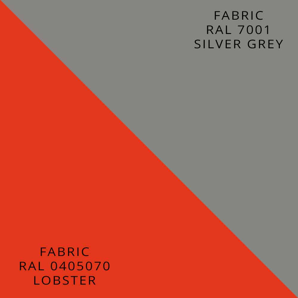 Disponible en différentes finitions:- combinaison 1: structure noire mate et tissu double face RAL 0405070/7001 orange / gris.