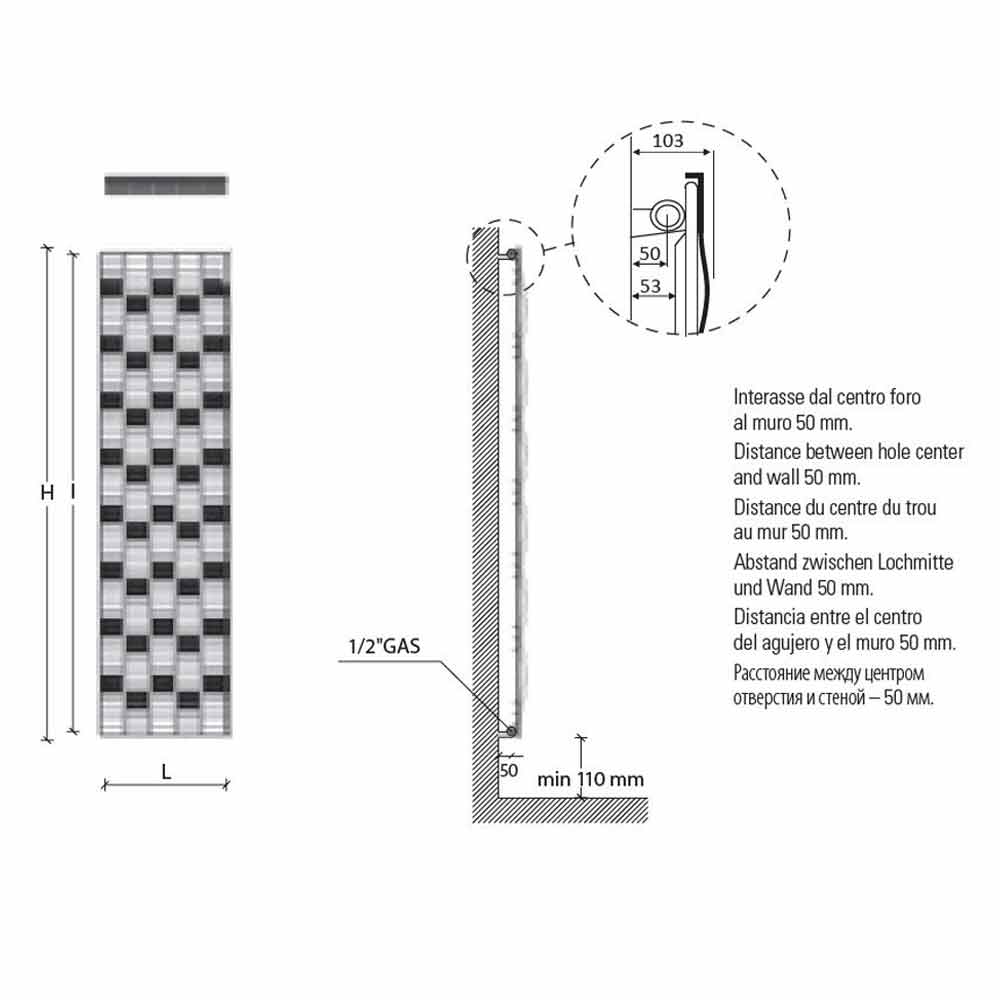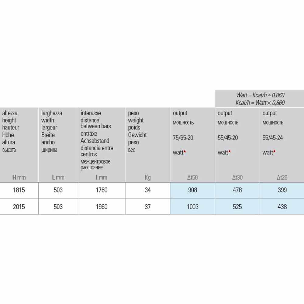 Disponible en différentes tailles de 5 barres *:- H 1815 x L 503 x Inter. 1760 mm x Sortie w (Δt50 *) 908; Rendement w (At30 *) 478; Rendement w (Δt26 *) 399