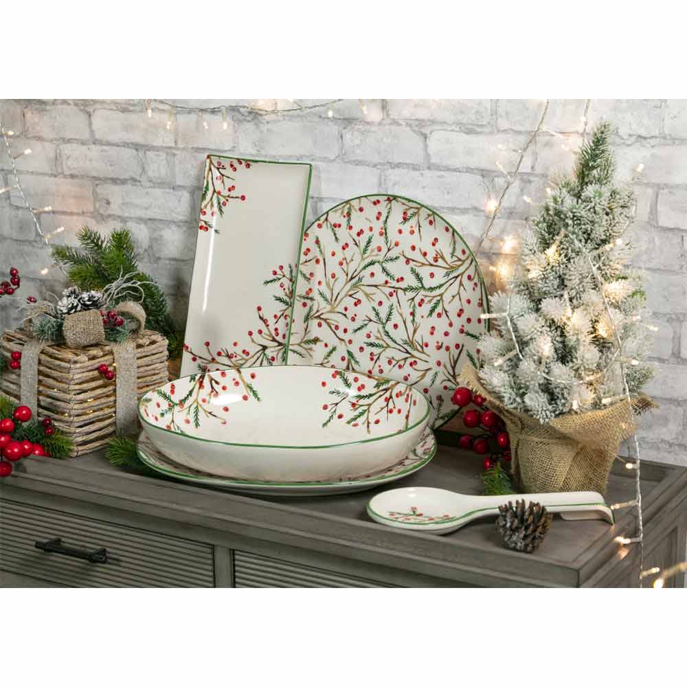 Décorez votre maison et votre table avec le style naturel des assiettes ovales de Noëlen porcelaine avec les décorations de Noël typiques choisies parmi les brins de houx combinés au rouge, symbole de Noël par excellence, ou les baies de houx combinées au raffinement de la matière , qui contribuera à apporter une touche de magie et à rendre la mise en place simple et élégante.