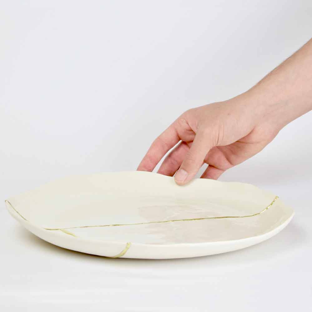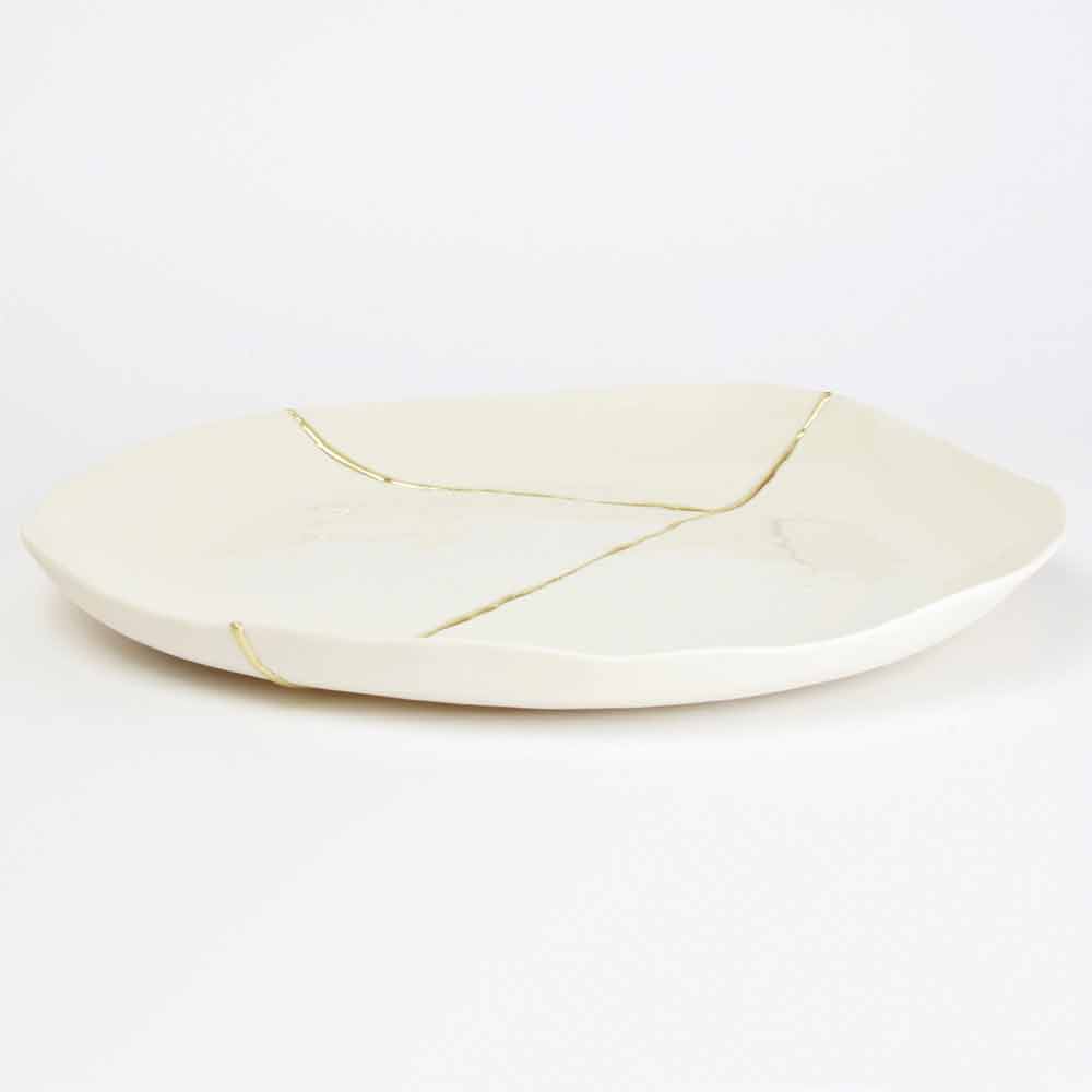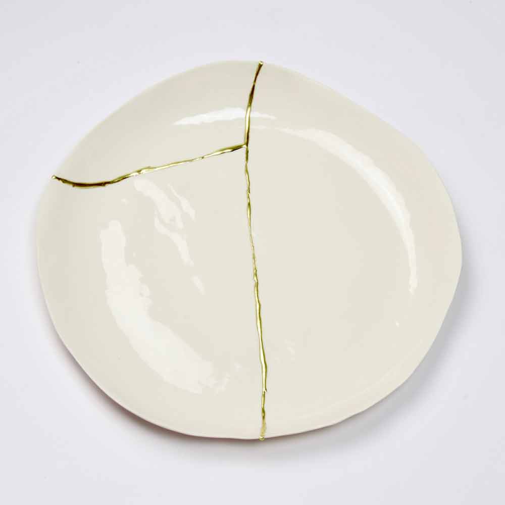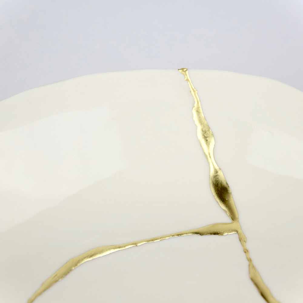 Fabriqué dans la plus belle porcelaine blanche , ce porte- monnaie rond reprend la philosophie japonaise du kintsugi qui consiste à rehausser et non à cacher les blessures de la vie car elles font partie de notre histoire et contribuent à faire de nous le peuple que nous sommes aujourd'hui. Ainsi, tout objet qui sort endommagé par la cuisson au four est réparé en utilisant de la feuille d'or 22 carats comme colle, ce qui crée une merveilleuse cicatrice précieuse.