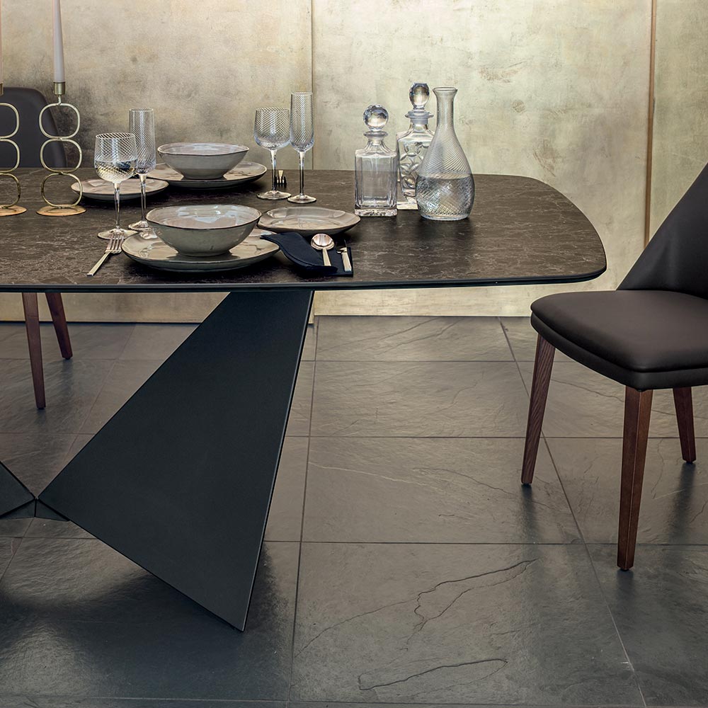 Plateau de table de salle à manger en céramique mate et pieds en métal - Monacco