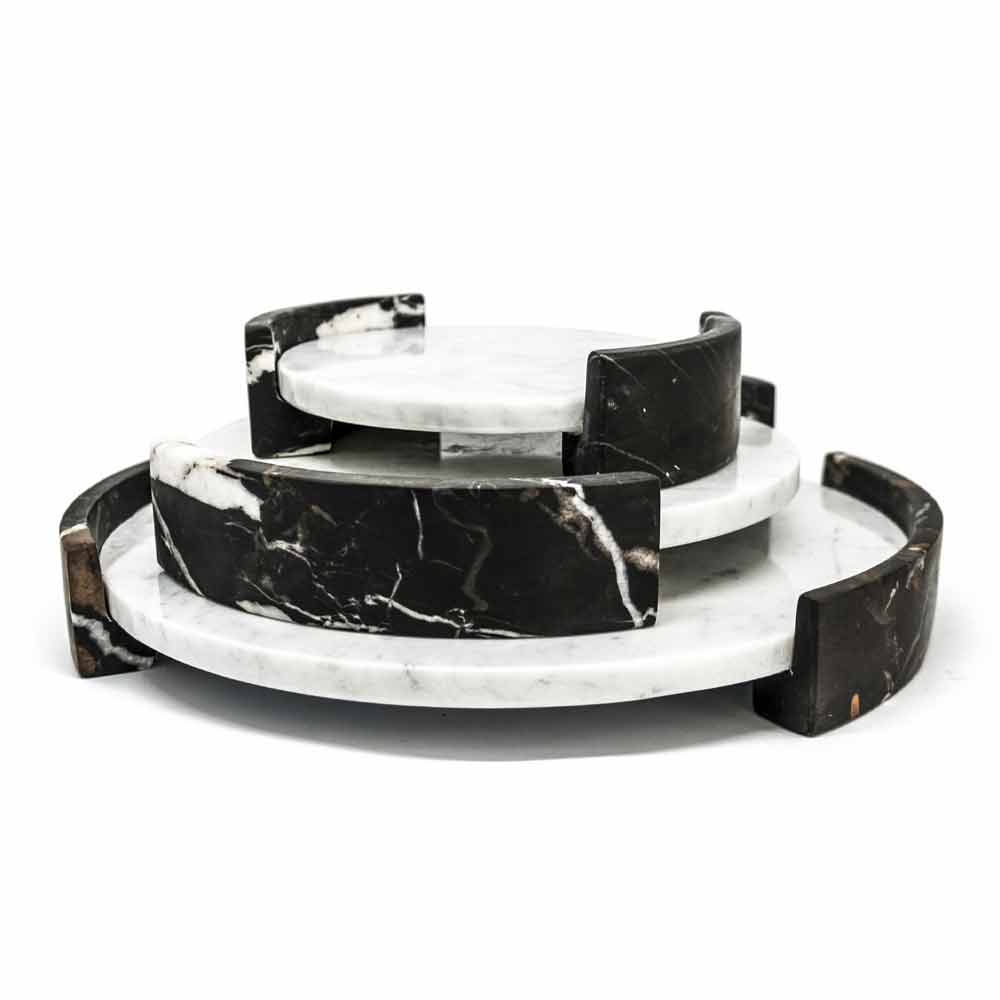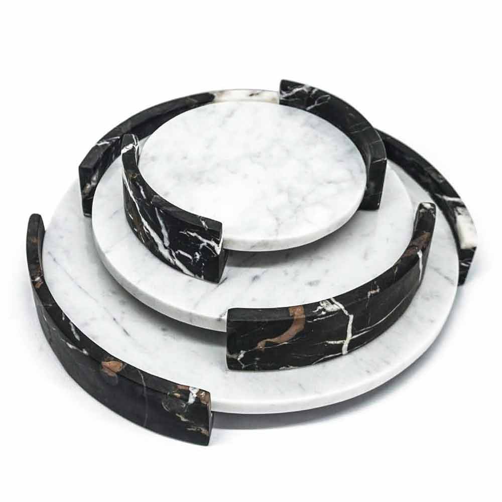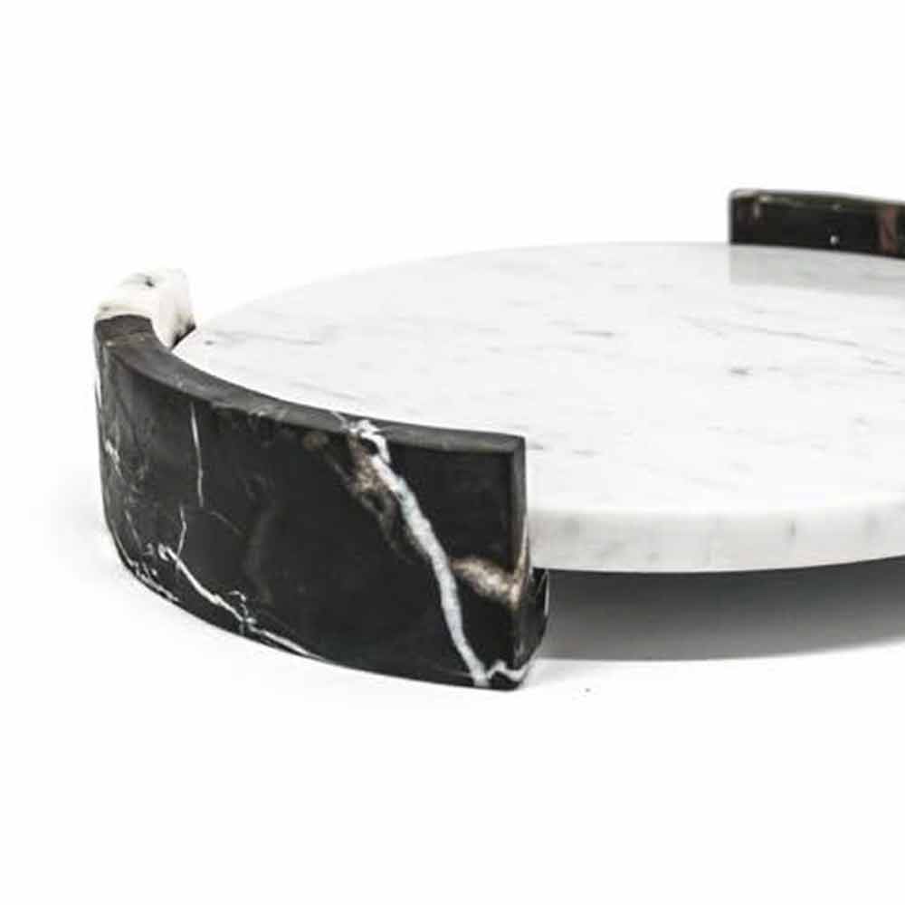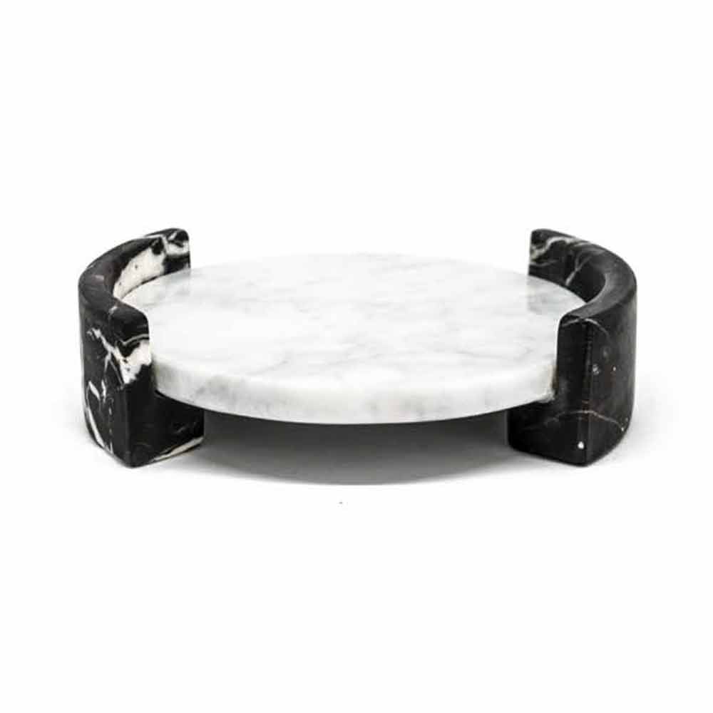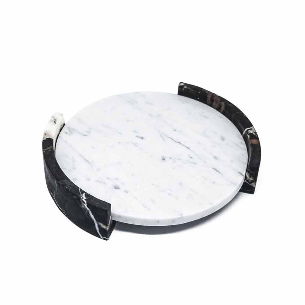 Plateau design rond en marbre blanc de Carrare de haute qualité Fabriqué en Italie.