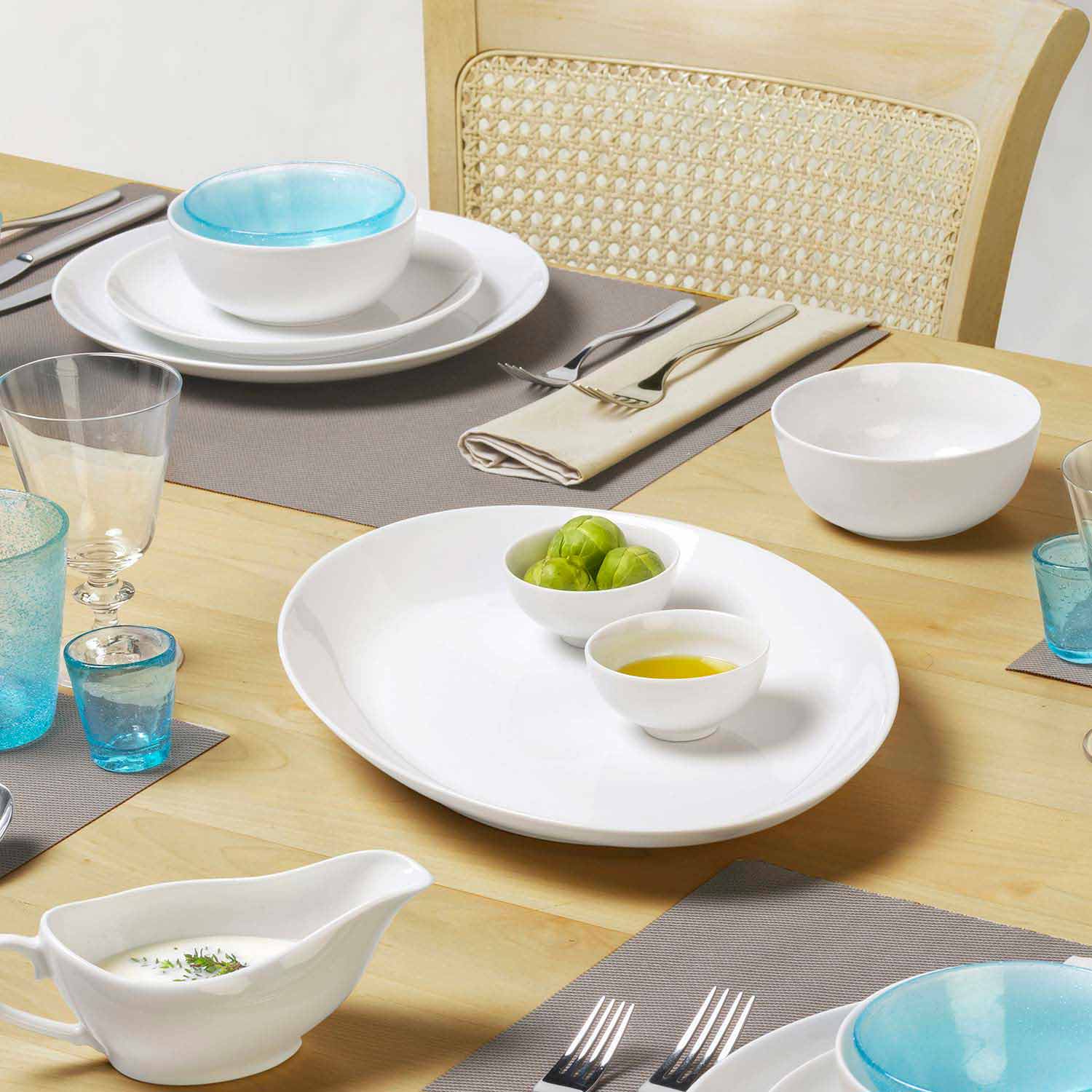 Découvrez la culture de la table faite d'émotions authentiques, reflétée dans un blanc pur, en choisissant entre des styles créatifs et excitants, parmi des formes harmonieuses en porcelaine fine que ce service offre.