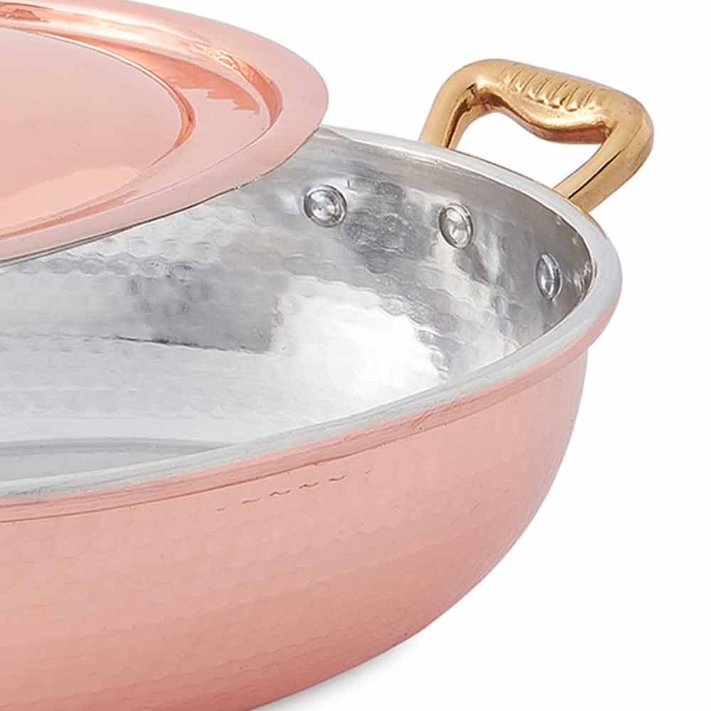 martelé à la main avec couvercle et poignées, exprime la maîtrise absolue de l'artisanat selon la