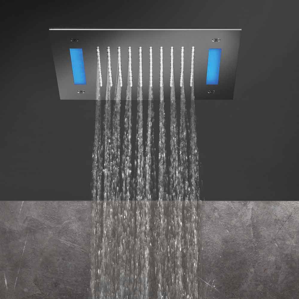 Pomme de douche en acier inoxydable avec chromothérapie LED, article de luxe Made in Italy.