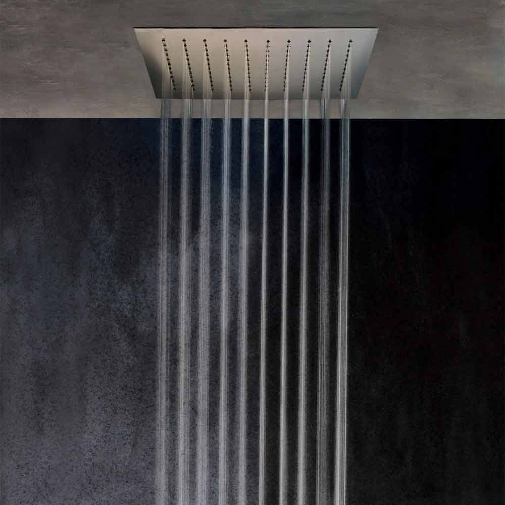 Pomme de douche de plafond carrée moderne en acier fabriquée en Italie.