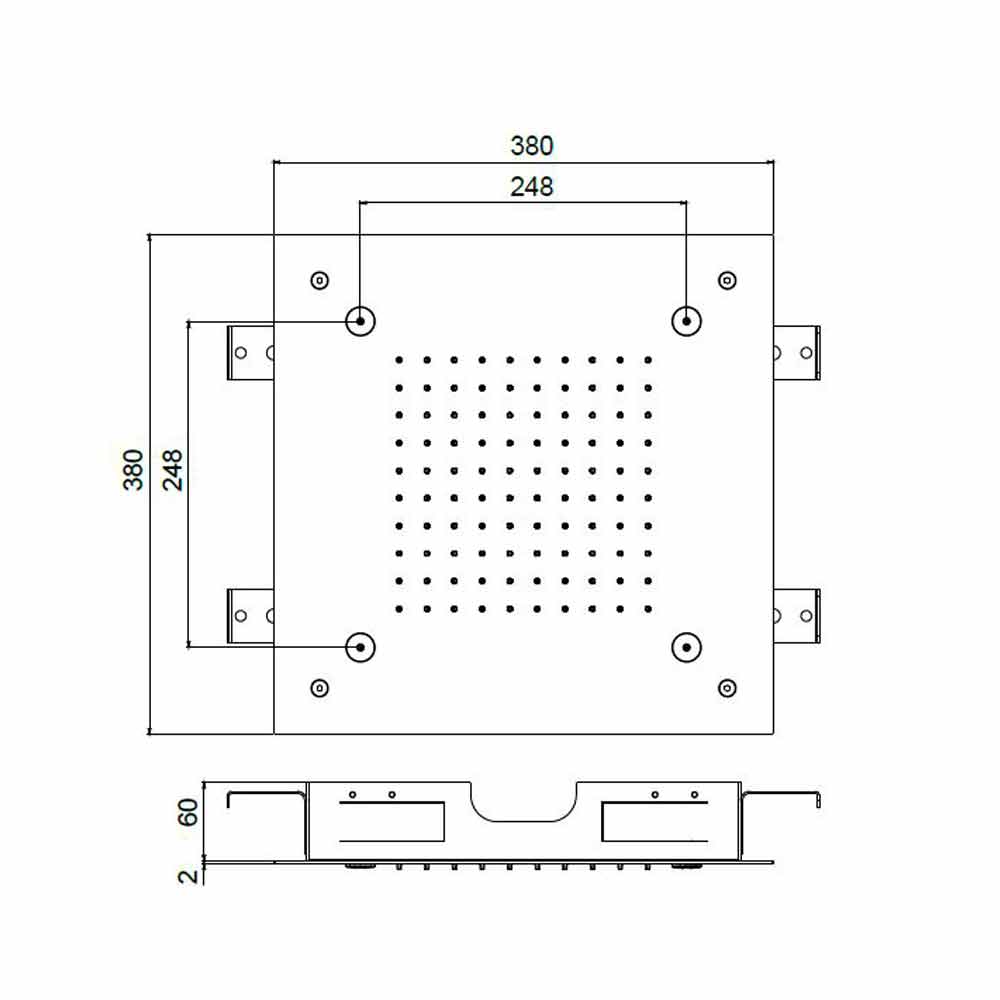 Pommeau de douche carré en acier avec double jet, article de design de haute qualité fabriqué en Italie.