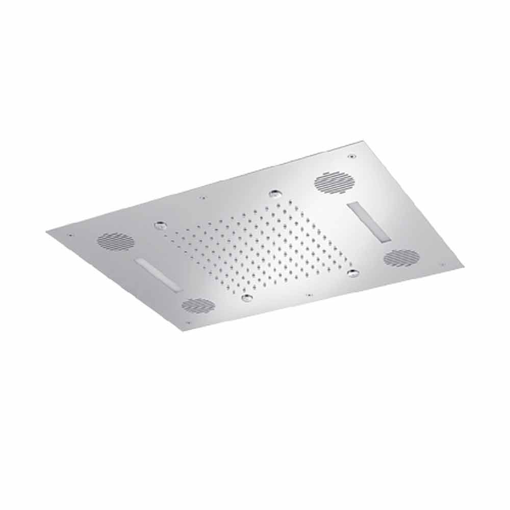 Pomme de douche en acier inoxydable avec chromothérapie et accès radio, produit de luxe Made in Italy.