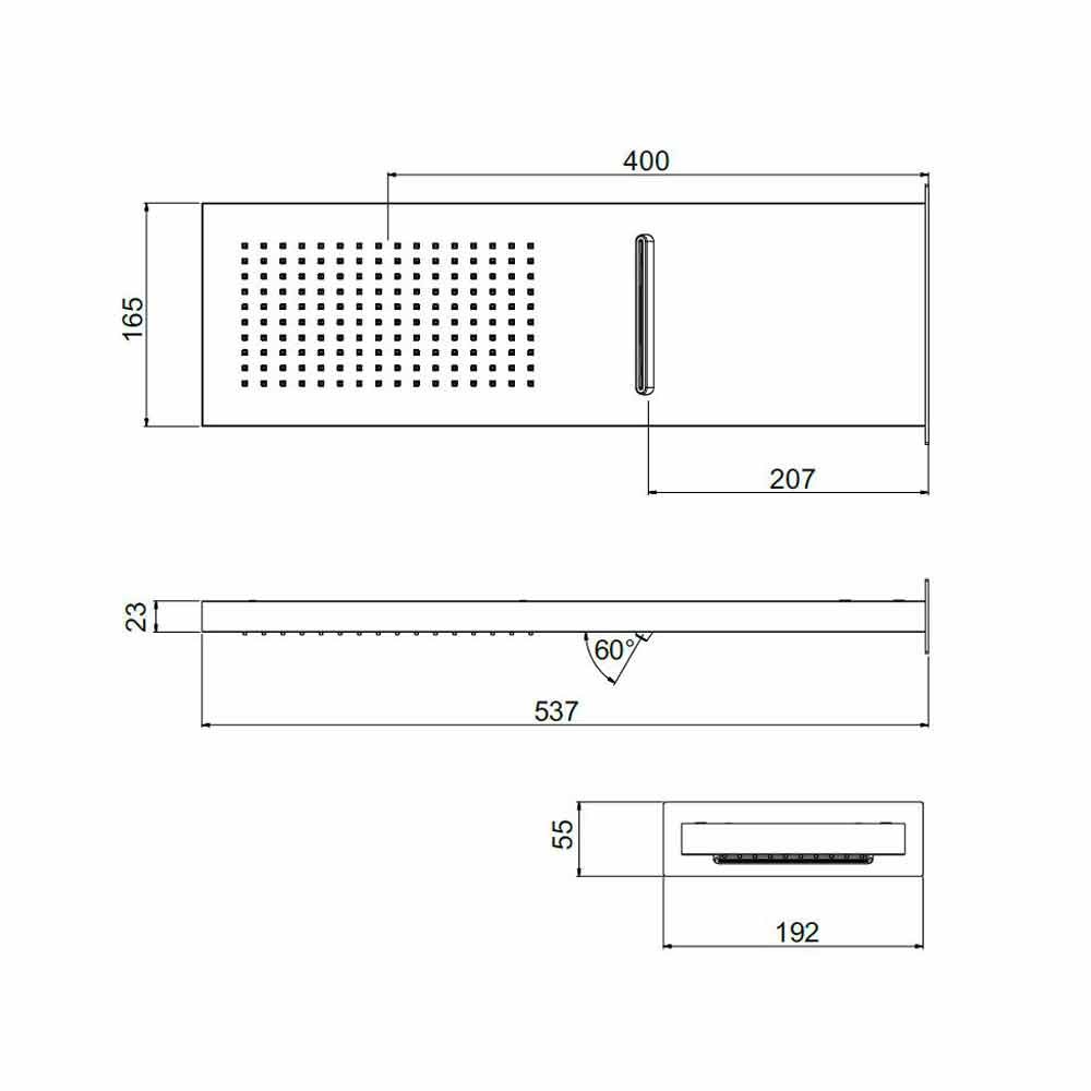 Pomme de douche rectangulaire en acier inoxydable avec double jet Fabriqué en Italie.