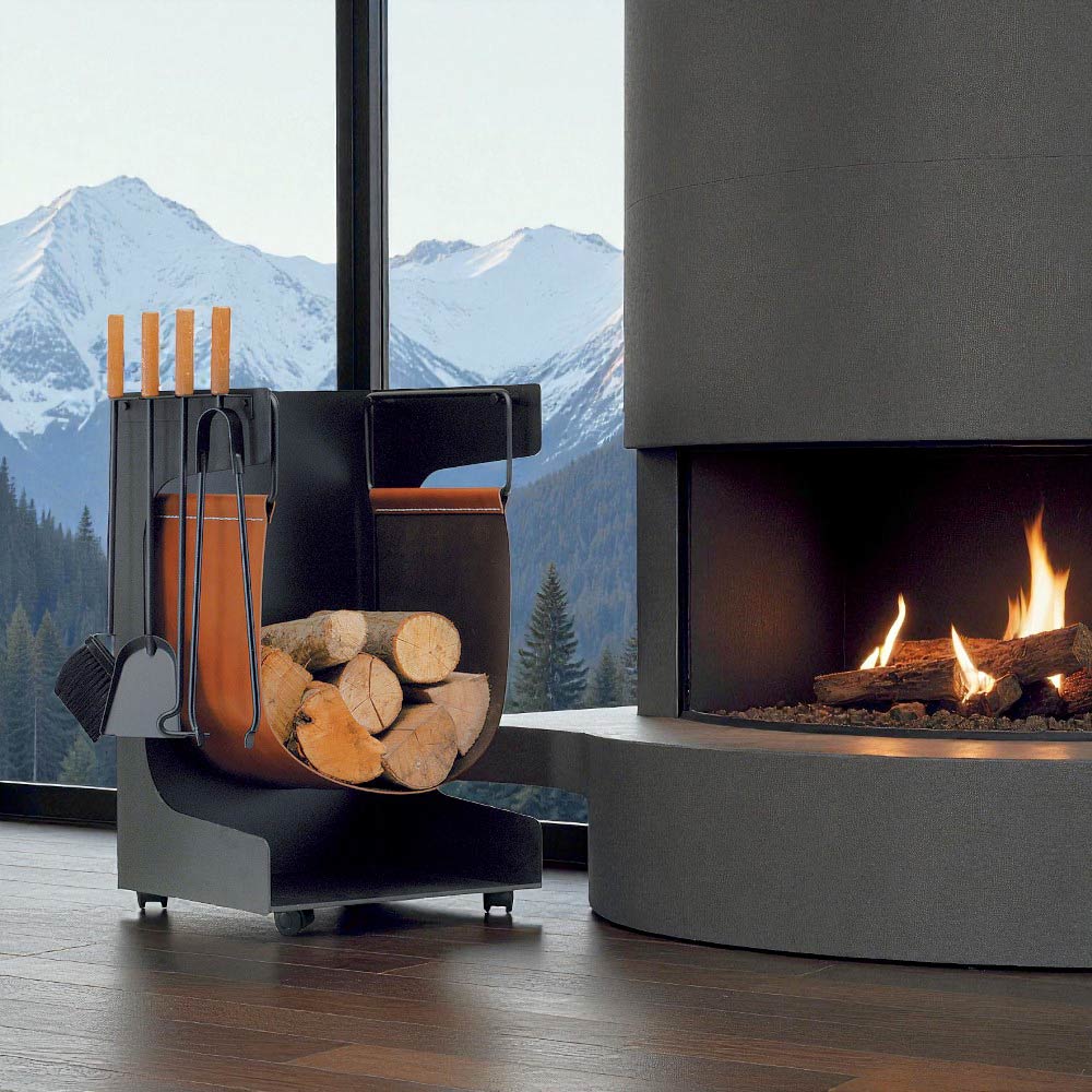 Ce range-bûches en métal est l'exemple parfait de l'alliance de la fonctionnalité et de l'élégance. Son design ingénieux sert non seulement de rangement pratique pour le bois, gardant vos bûches bien rangées et à portée de main, mais comprend également un ensemble d'accessoires de cheminée , soigneusement rangés dans des supports verticaux pour un accès facile : une brosse, une pelle, un crochet et une pince .
