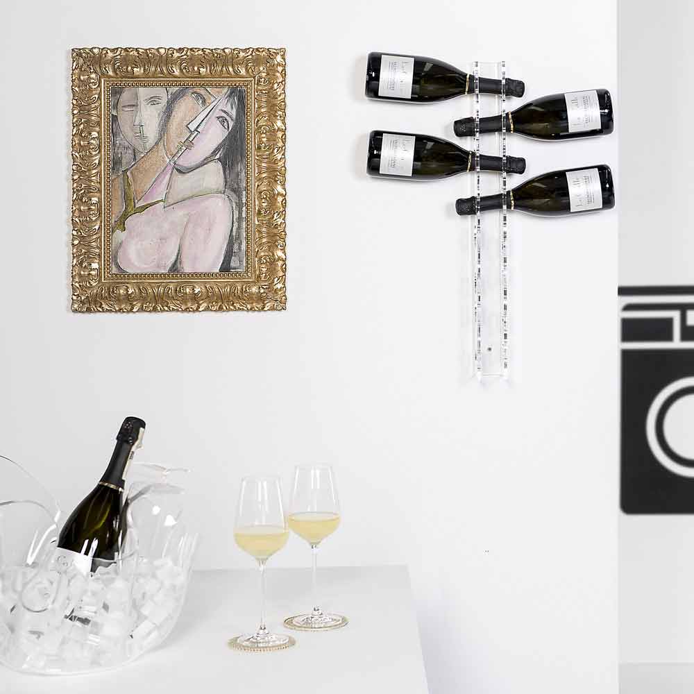 Porte-bouteilles mural 8 places en plexiglas PMMA de polymère 100% vierge. Avec Baby Small vous pourrez composer des structures modulaires pour ranger au mieux vos bouteilles les plus précieuses.