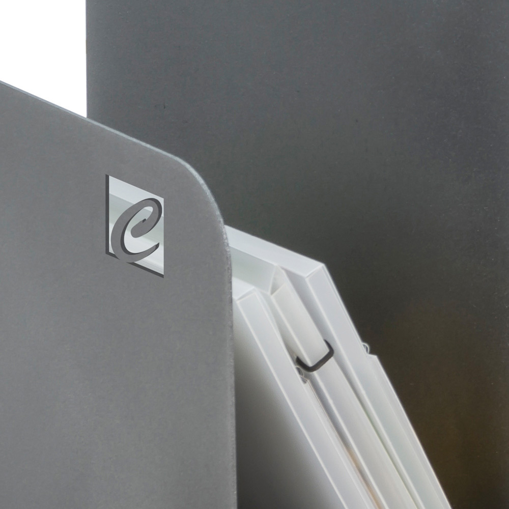 Porte-bûches/table basse/porte-revues de design moderne en acier gris fabriqué en Italie.