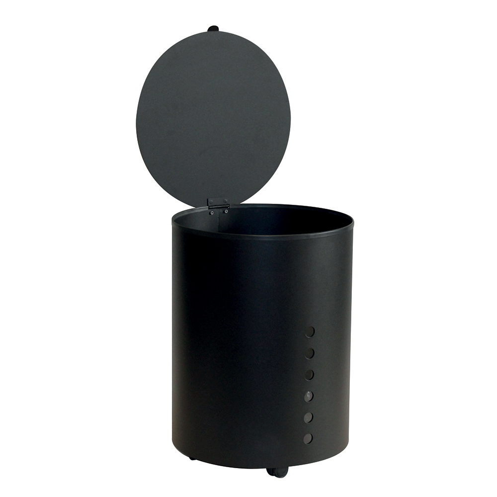 Ce porte-granulés a été conçu dans un souci à la fois esthétique et fonctionnel . Sa forme cylindrique avec une finition noire s'adapte aux environnements au design à la fois moderne et traditionnel. Le couvercle supérieur permet de protéger le contenu de l'humidité et de la saleté, en préservant la qualité des pellets.
