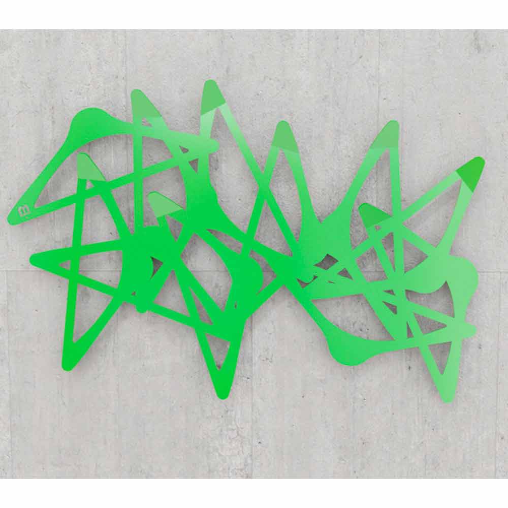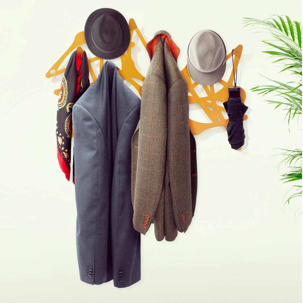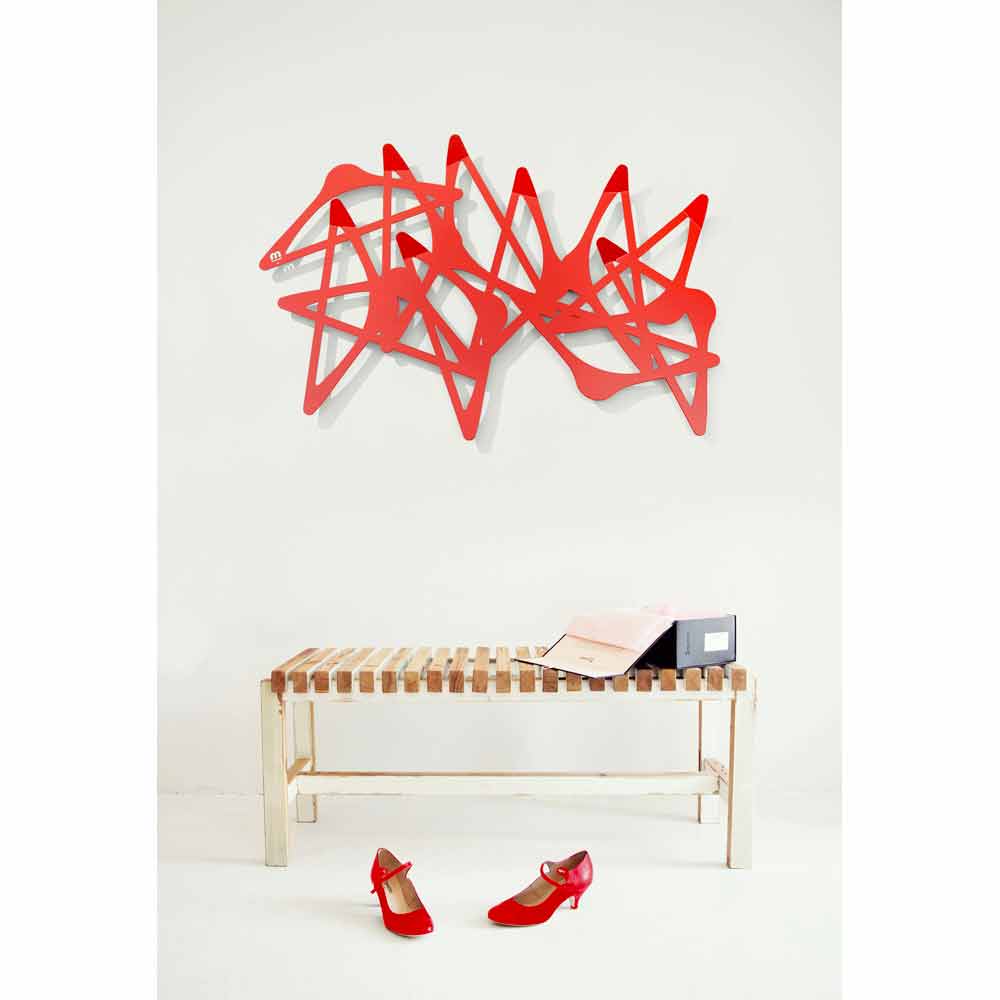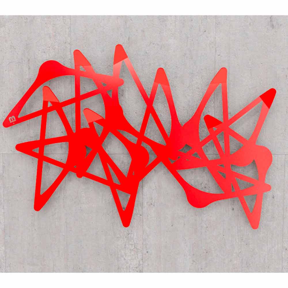Porte-manteaux de design Blabla, créé par Mabele Désordre pour mettre de l'ordre. Si non entre les paroles, au moins entre les manteaux et les vestes. Blabla est un porte-manteaux découpé au laser, ayant la forme d'un ensemble chaotique et désordonné de cintres stylisés. Cet article est disponible en blanc, rouge, noir, orange et vert.