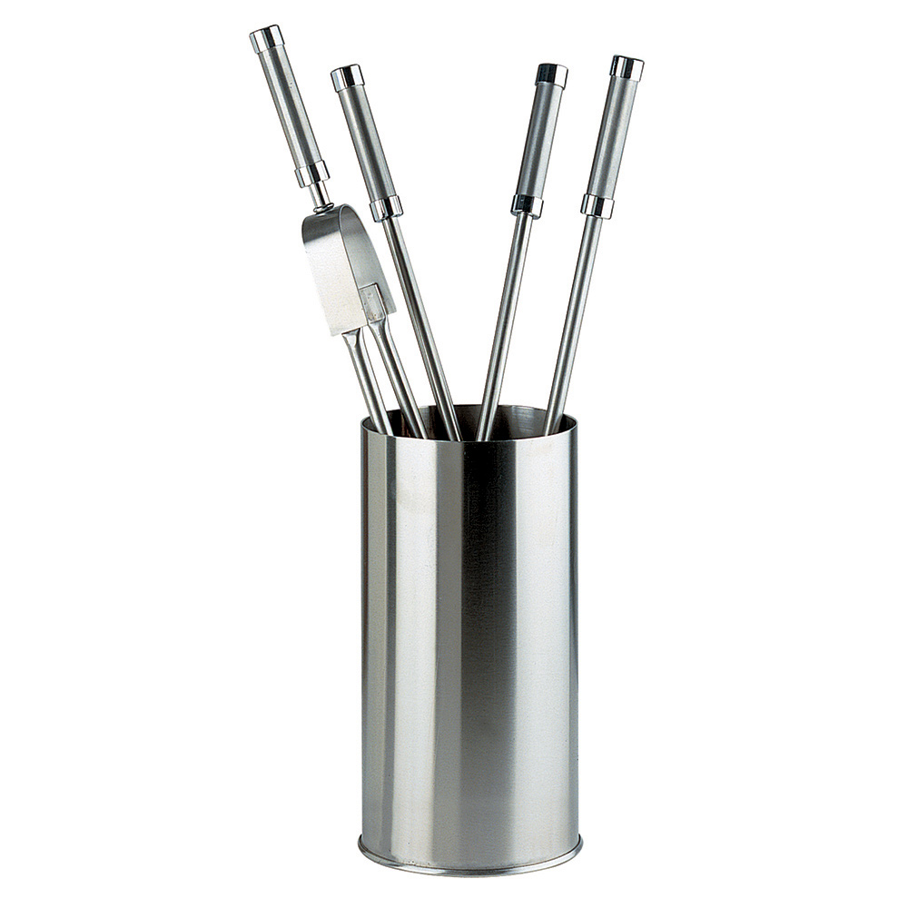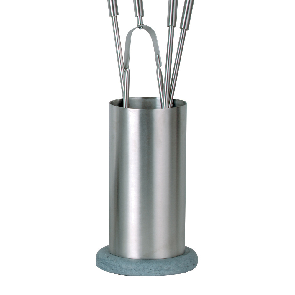 Robuste et durable , ce porte-outil est conçu pour résister à la chaleur et à une utilisation fréquente. Chaque ustensile est doté d'une poignée qui offre une prise confortable et sûre , vous permettant de manipuler le bois et les cendres avec facilité et style. Le support cylindrique garantit que chaque outil est toujours bien rangé et à portée de main, sans sacrifier l'élégance.