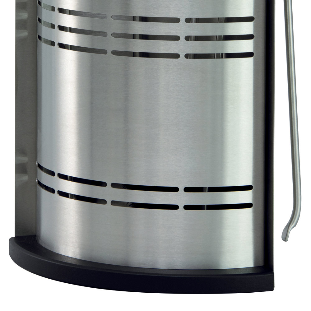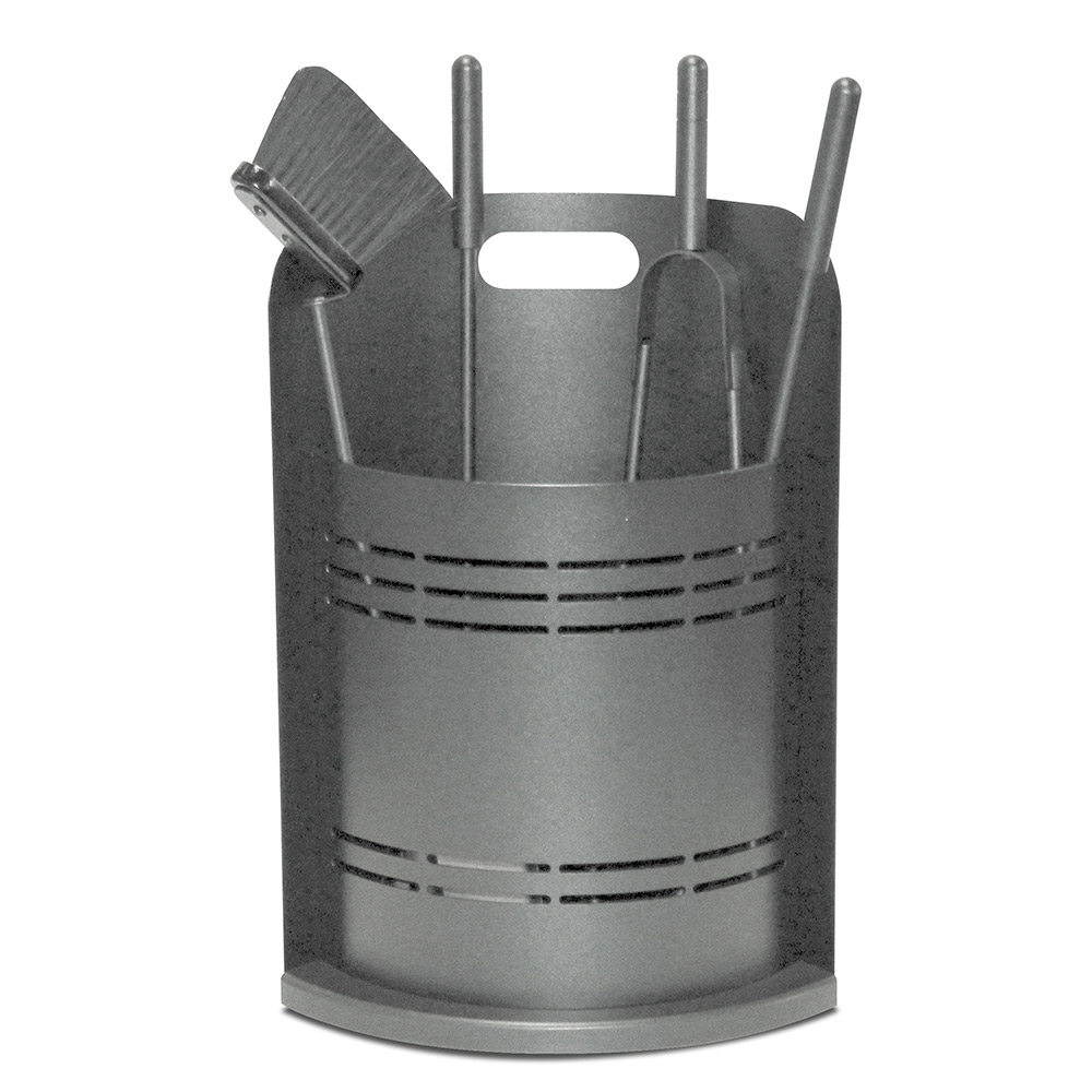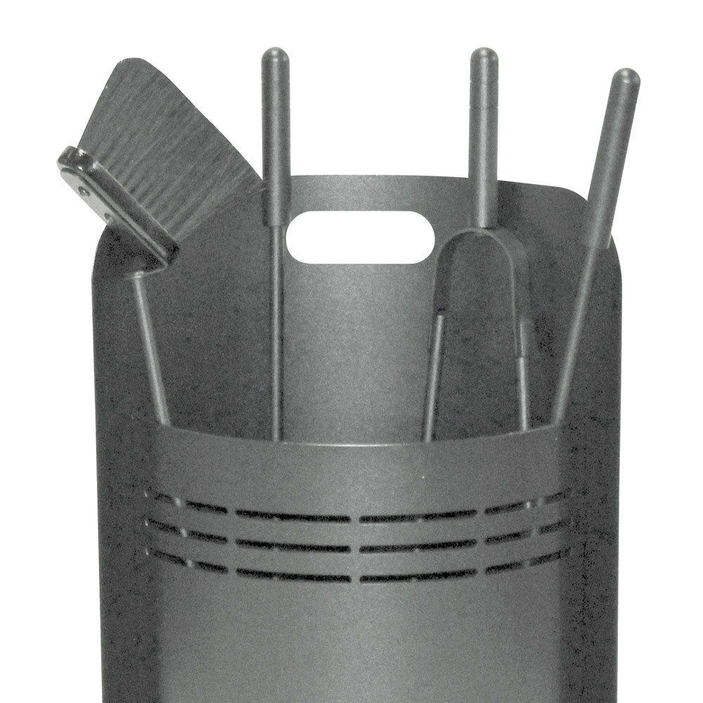 Ce porte-outils de cheminée est idéal pour ceux qui recherchent une touche de design contemporain . Sa forme cylindrique est élégante et peu encombrante, tandis que les fentes horizontales créent non seulement un détail visuel accrocheur mais assurent également une ventilation adéquate du matériel.