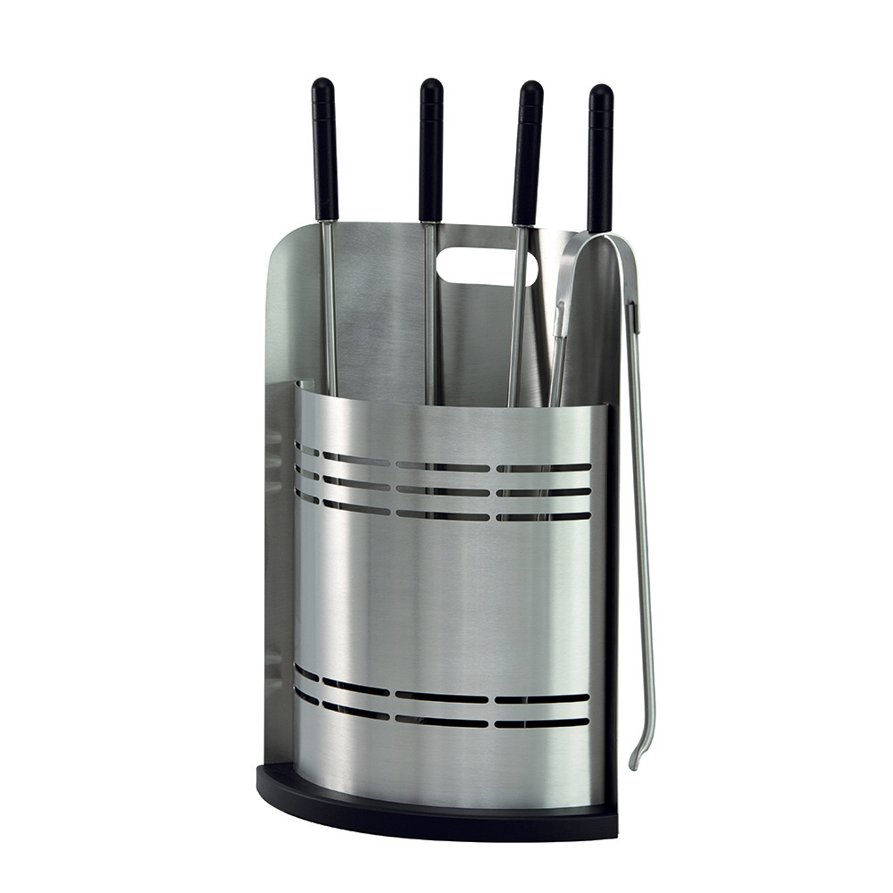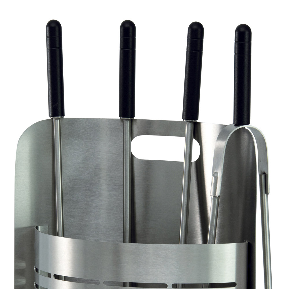 L'ensemble comprend 4 accessoires , tous indispensables pour entretenir le feu et nettoyer le foyer. La présence d'une poignée sur le dessus permet de soulever facilement l'ensemble du porte-outil et de le déplacer là où vous le souhaitez. Son design est fonctionnel mais ne néglige pas l'esthétique, avec des lignes épurées et une structure solide qui en font un élément durable et élégant au sein de la maison.