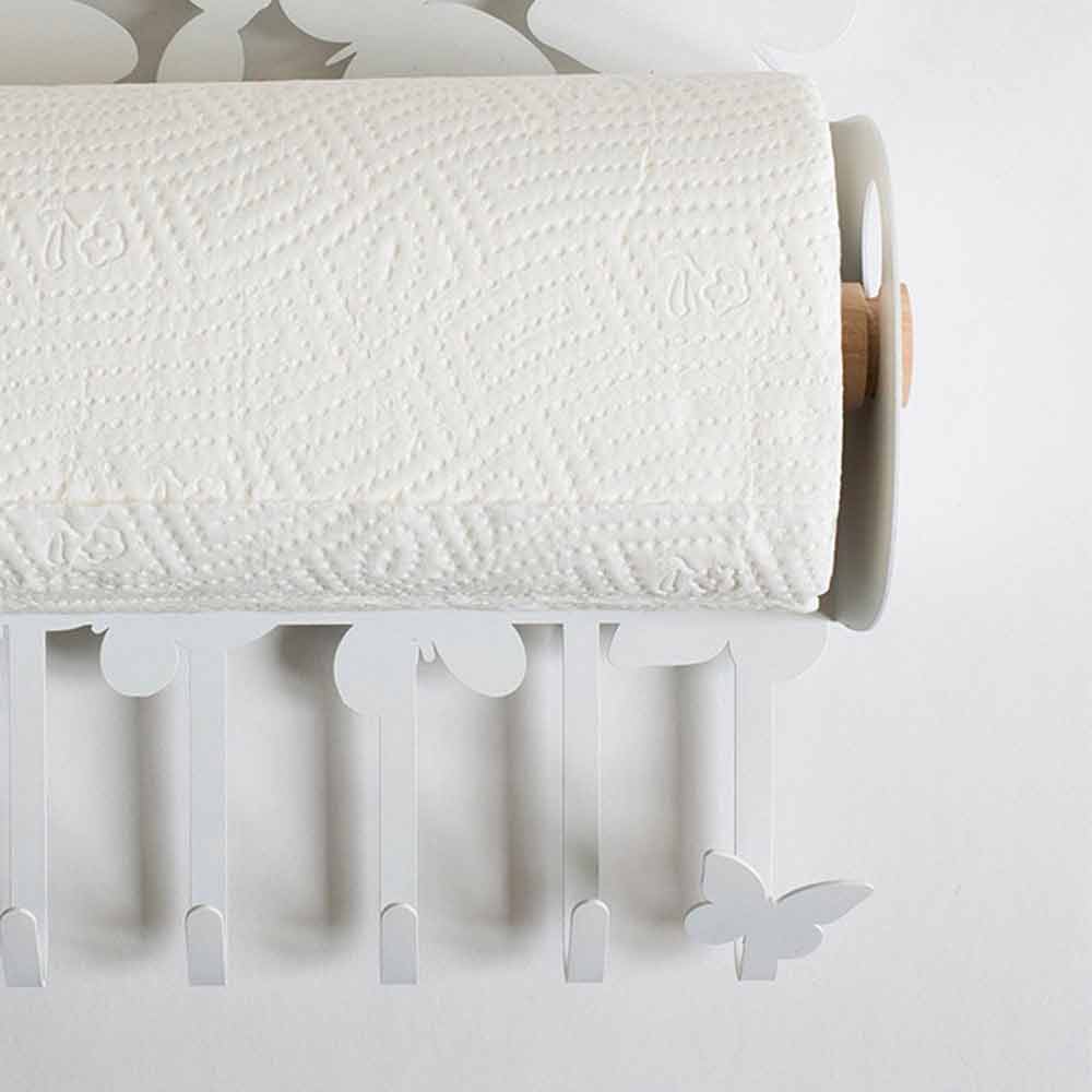 Porte-rouleau mural design moderne en fer blanc ou beige fabriqué à la main en Italie.