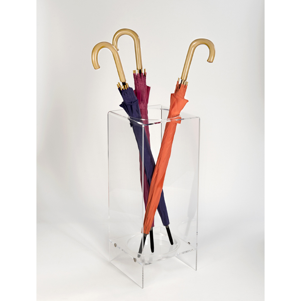 Cetteélégant support de parapluie avec un design fonctionnel et pratique est faite d' un polymère plexiglass disponible vierge à 100% en deux finitions. Conçu, conçu et fabriqué en Italie , avec des matériaux italiens, l'éclat et la brillance restent constants et inaltérés dans le temps.