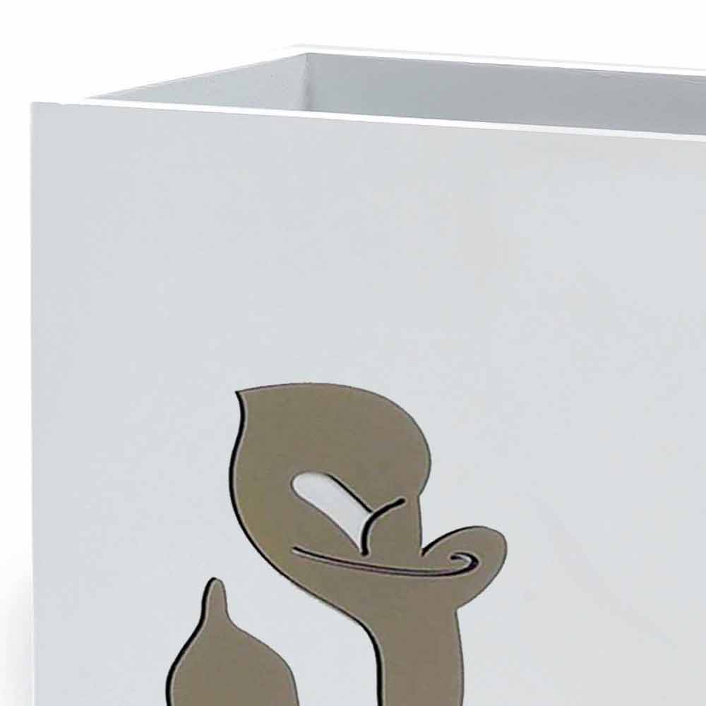 Choisissez la réinterprétation la plus classique du porte -parapluie de sol en bois laqué avec l'application d'une décoration florale en forme de calla de couleur gris tourterelle en contraste avec le blanc mat de la base. À l'intérieur, il contient un plateau pratique pour recueillir l'eau.
