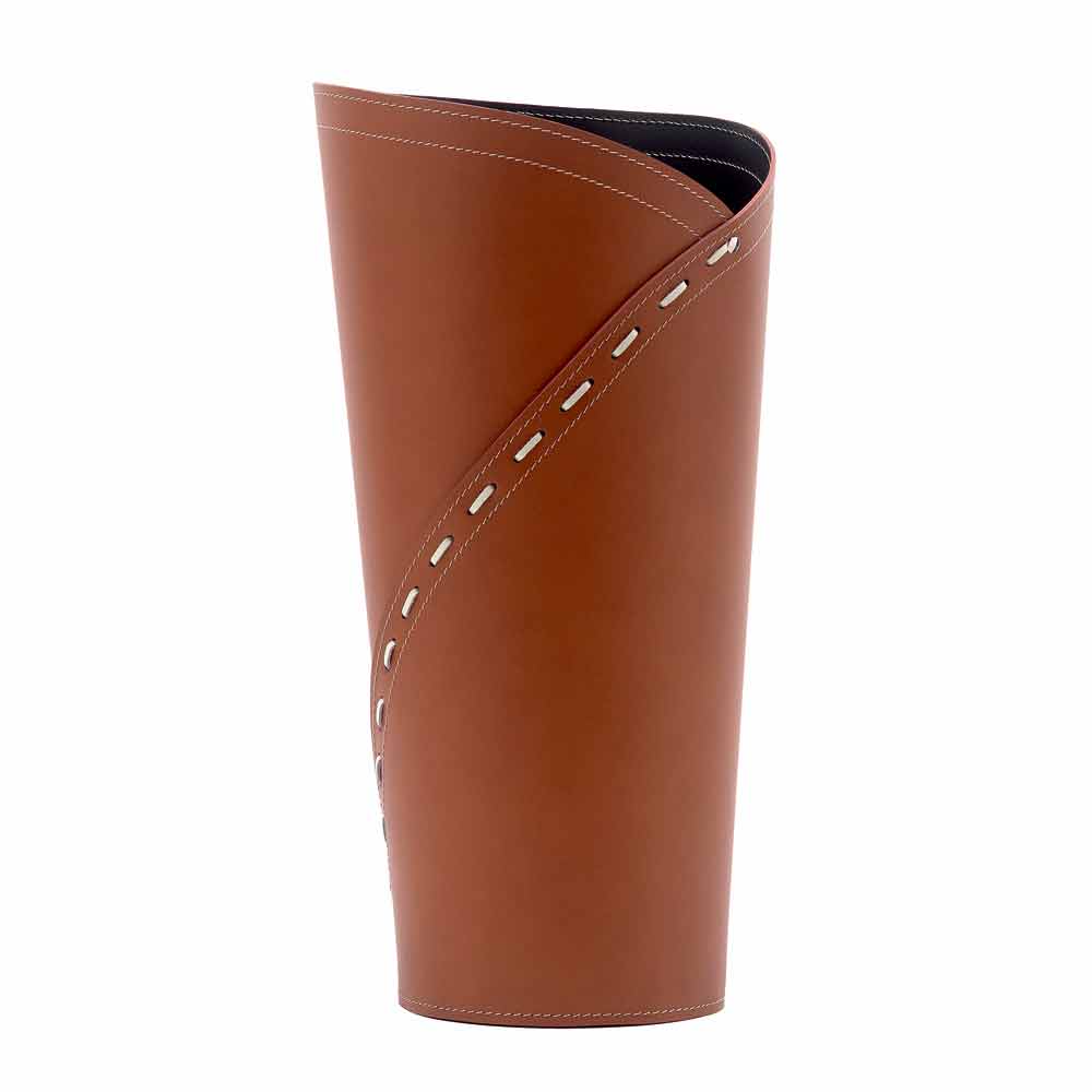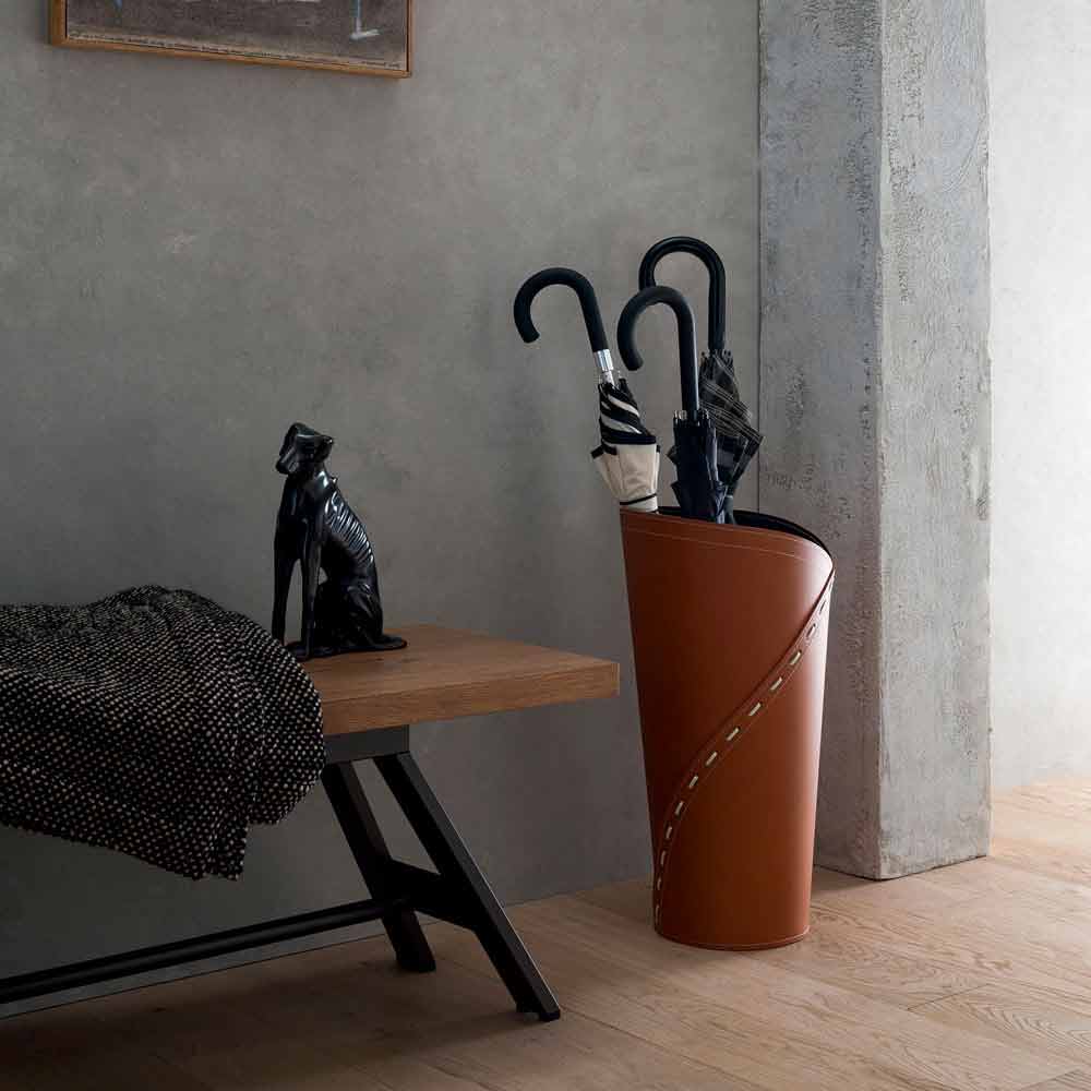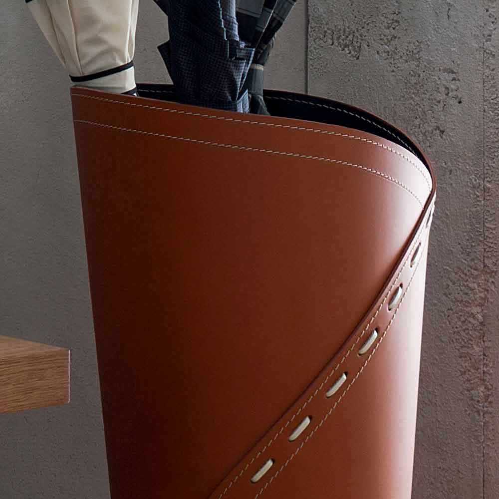Katrina, porte-parapluie design en cuir 100% made in Italy Le porte-parapluie Katrina est en cuir régénéré, qui couvre à la fois les surfaces externes et internes. La couture apparente est un détail élégant qui contribue à conférer une valeur décorative à un complément purement fonctionnel. Pour la production, réalisée à la main par des artisans spécialisés dans le traitement du cuir, seuls des matériaux de haute qualité et résistants sont utilisés. À l'intérieur, il y a un bac d'égouttage en plastique. Différentes couleurs sont disponibles, ce qui permet une meilleure adaptation à l'environnement dans lequel il sera placé, qu'il s'agisse d'un bureau, d'un environnement domestique ou d'un environnement contractuel.