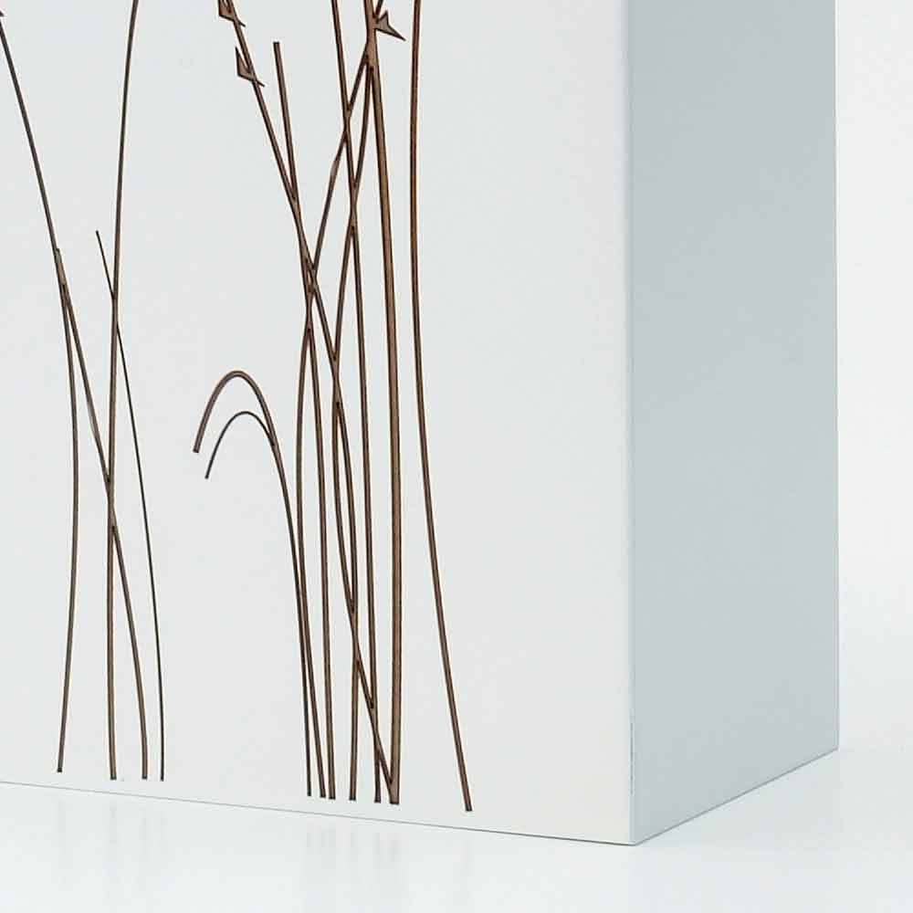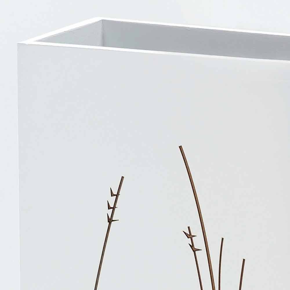 Porte-parapluie rectangulaire moderne en bois blanc avec motifs marqués au laser, design sur pied fabriqué en Italie.