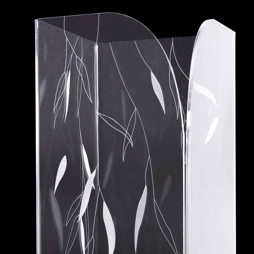 Porte-parapluies en plastique transparent avec feuilles décoratives gravées au laser, design made in Italy.