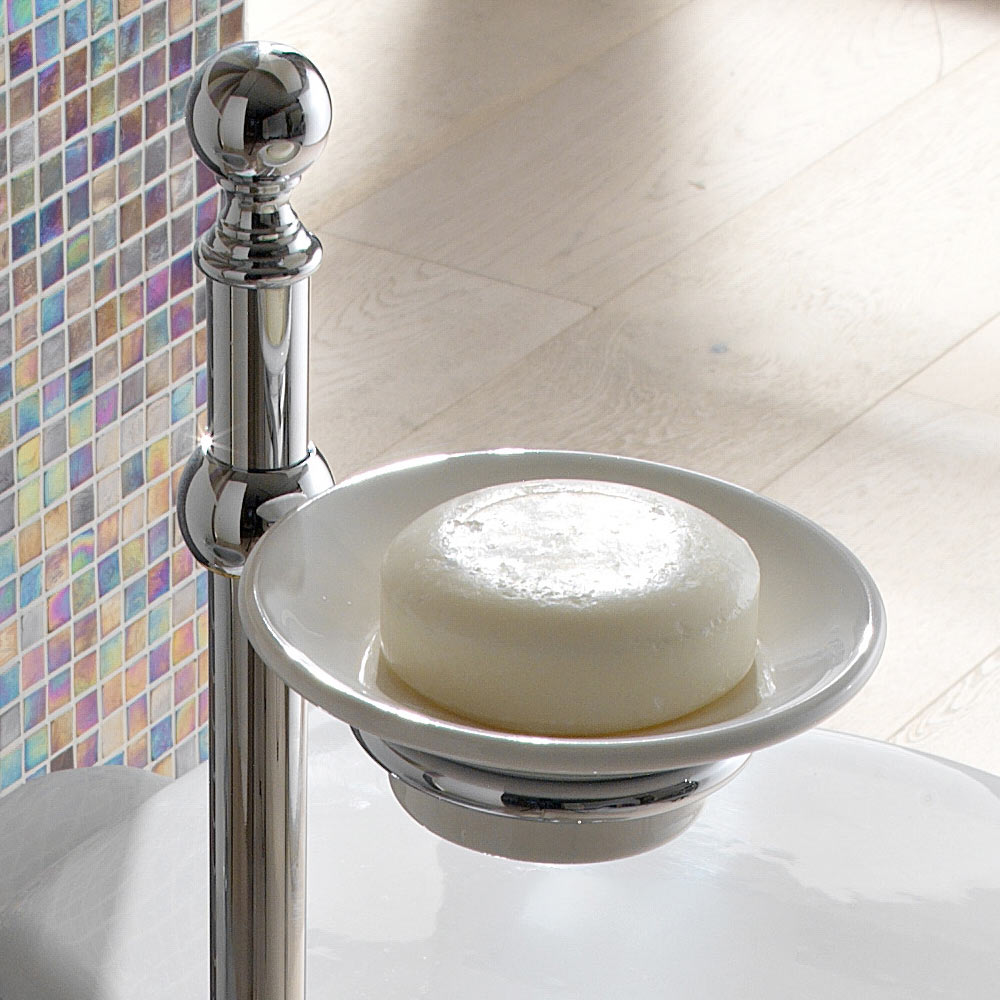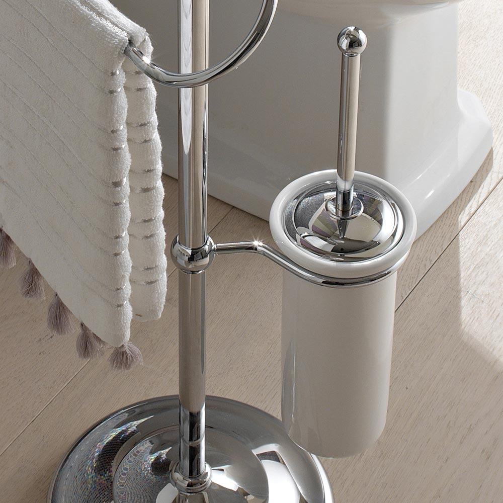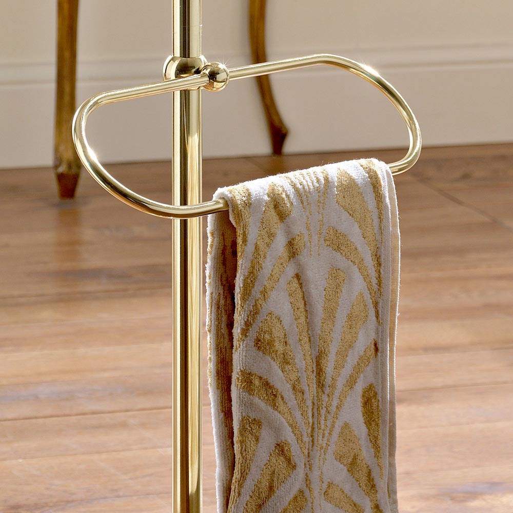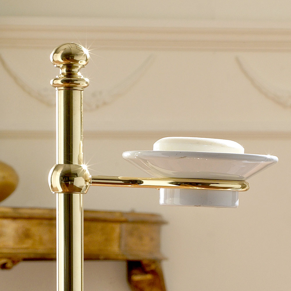 Porte-serviettes de sol avec porte-savon en laiton et céramique produit en Italie, Rouen.