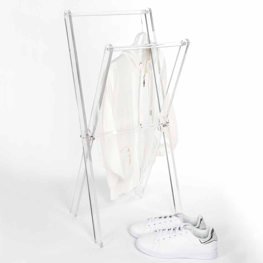 Porte-serviettes de sol en plexiglas transparent ou en bois design moderne fabriqué en Italie.