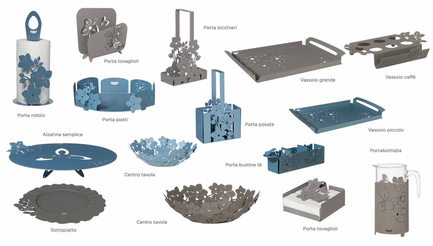 Porte-serviettes de table basse au design moderne, fabriqué à la main en Italie en fer blanc, marbre, bleu clair ou boue.