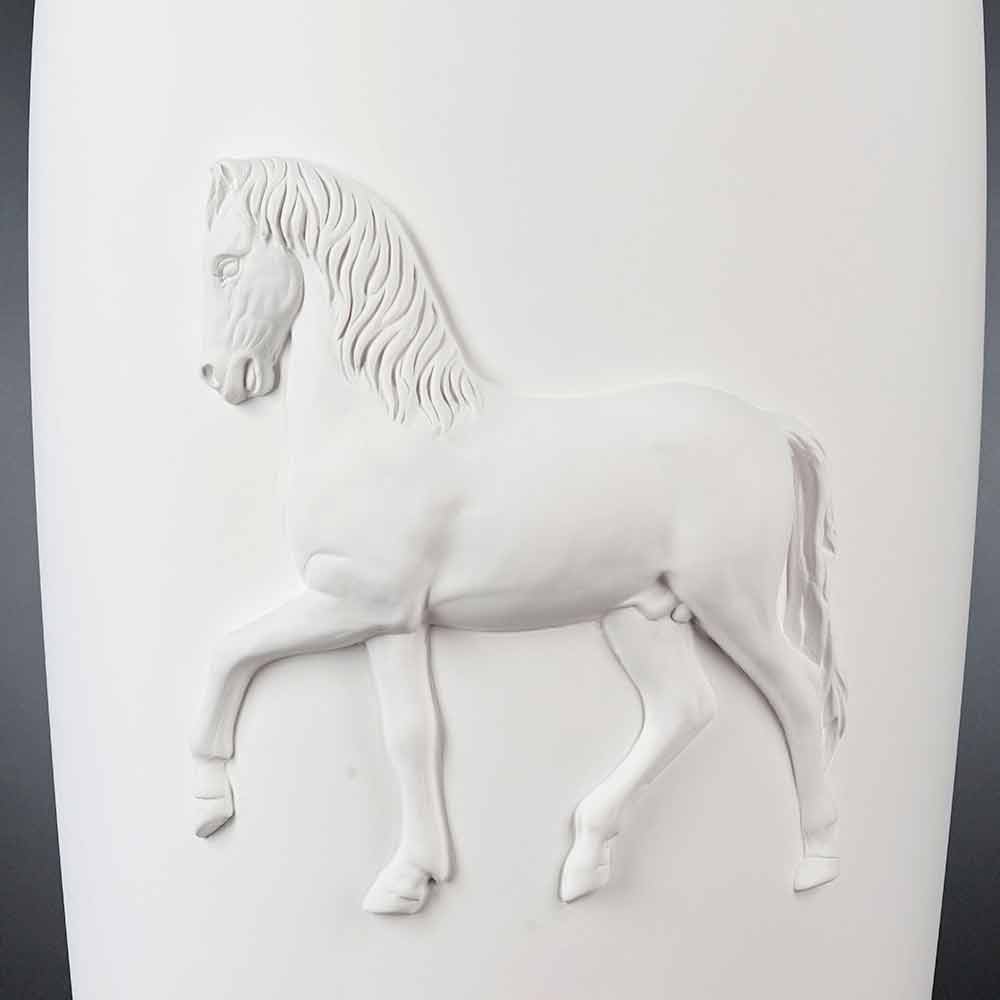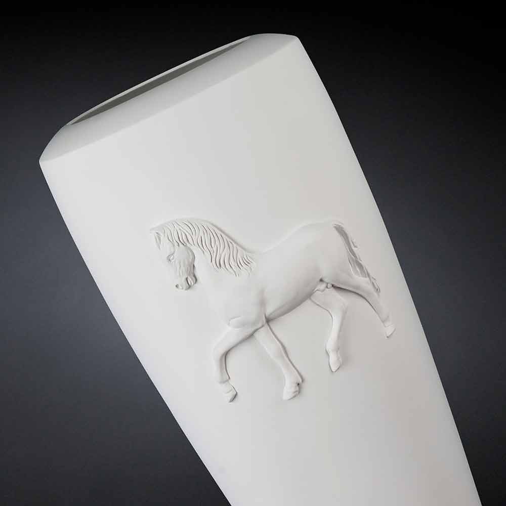 Pot décoratif de design moderne, produit d'artisanat italien, en céramique travaillée à la main, représentant un cheval en relief. Carlos, entièrement fait en Italie, est également disponible en d'autres finitions. Demandez un devis à: info@viadurini.fr
