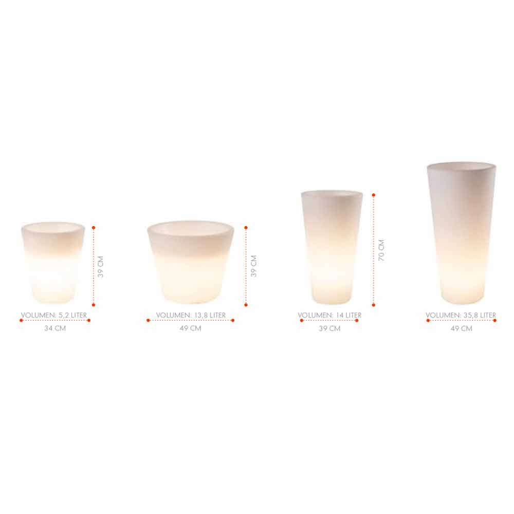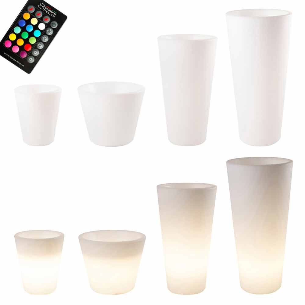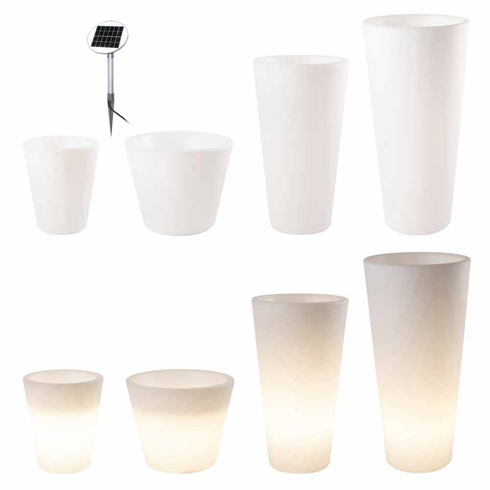 Vase lumineux au design blanc et moderne pour l'intérieur ou l'extérieur avec led ou solaire de différentes tailles.
